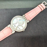 까르띠에 레이디 로드스터 Ref 2675 핑크 다이얼 2000년경로즈 컬러 다이얼을 갖춘 까르띠에 레이디 로드스터입니다. 31 x 37mm 토노형 케이스와 사파이어 크리스탈, 3시 방향 날짜가 특징입니다. 클래식한 스트레치 로마 숫자의 2톤 로즈 다이얼입니다. 배터리로 구동되는 쿼츠 무브먼트. 빛나는 검 스타일의 핸즈와 나비형 걸쇠가 달린 까르띠에 브레이슬릿이 장착되어 있습니다. 이 모델은 일반적으로 실버...