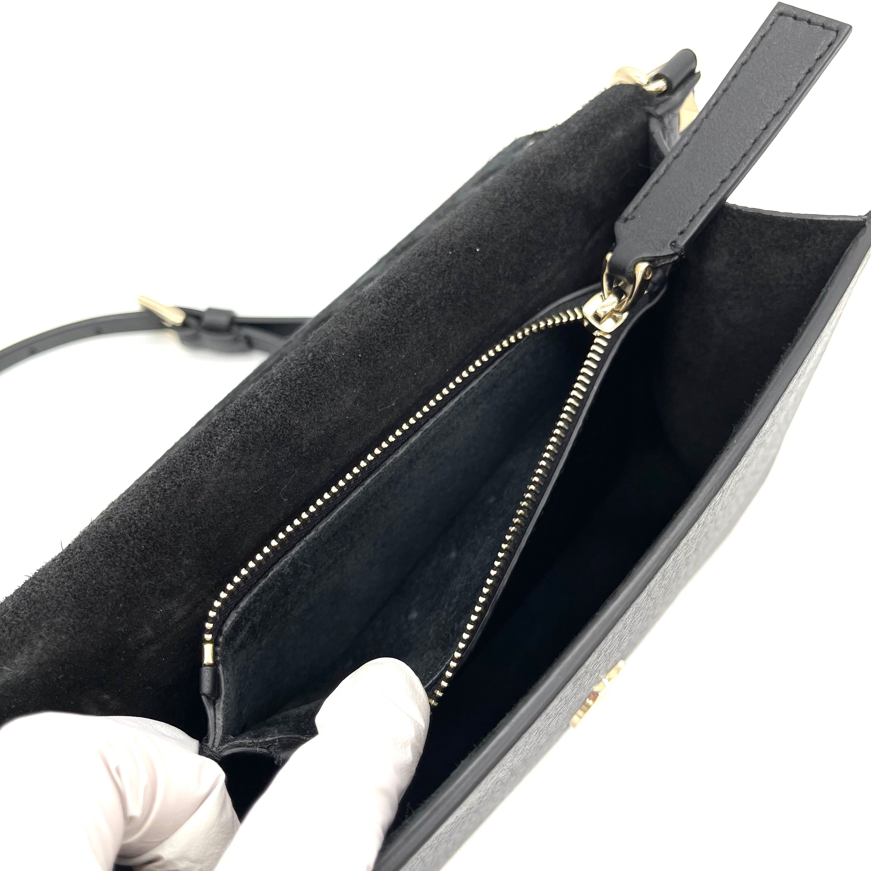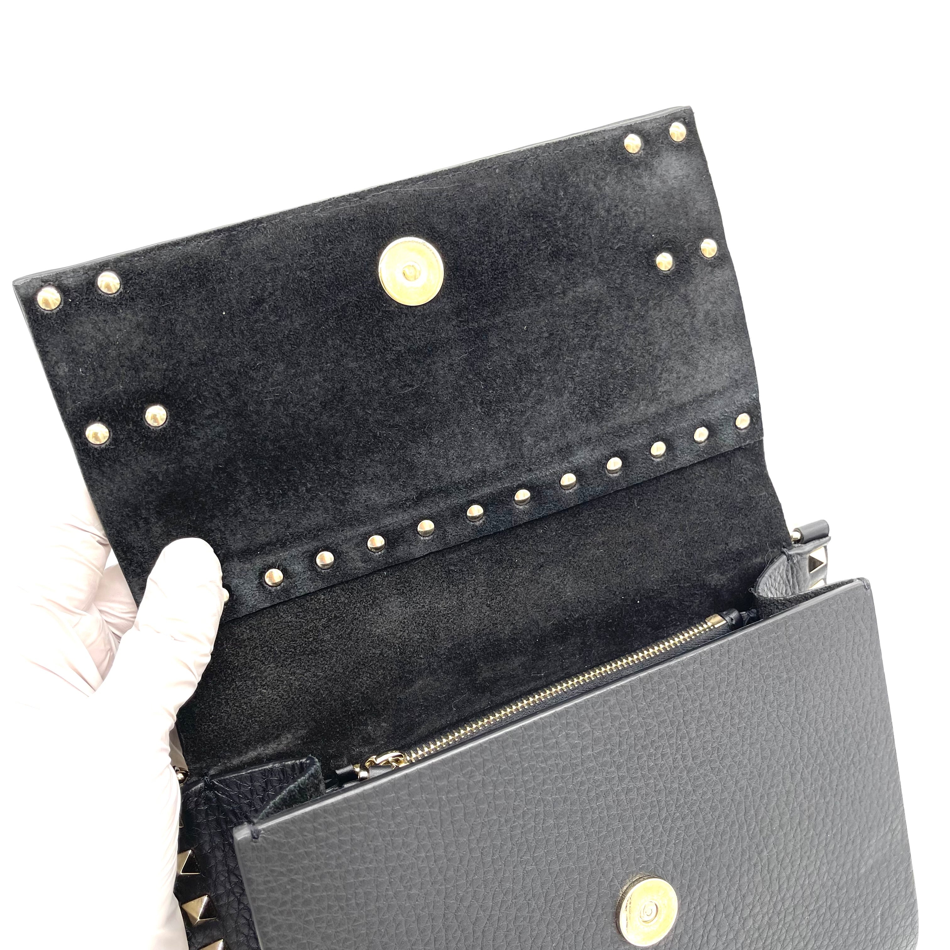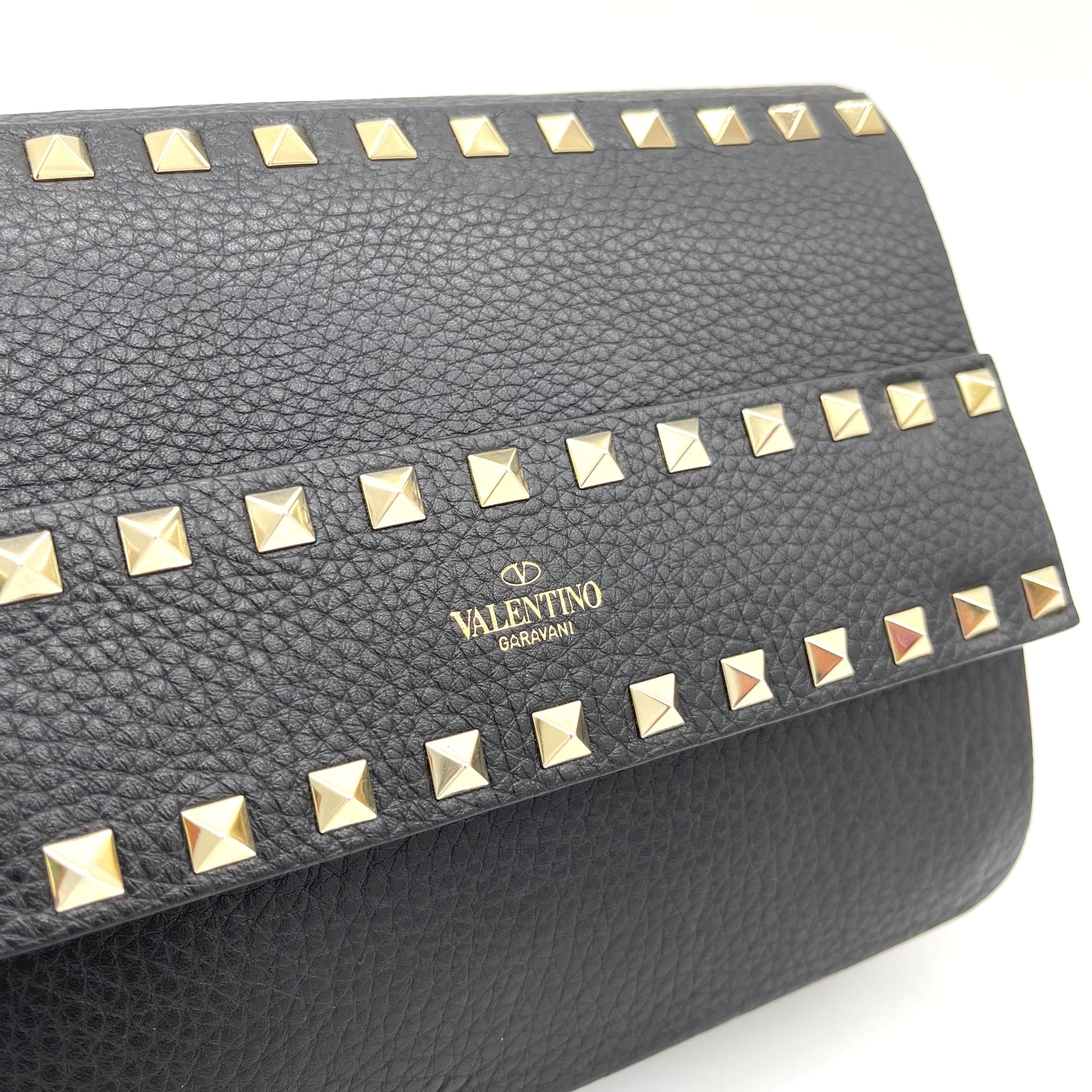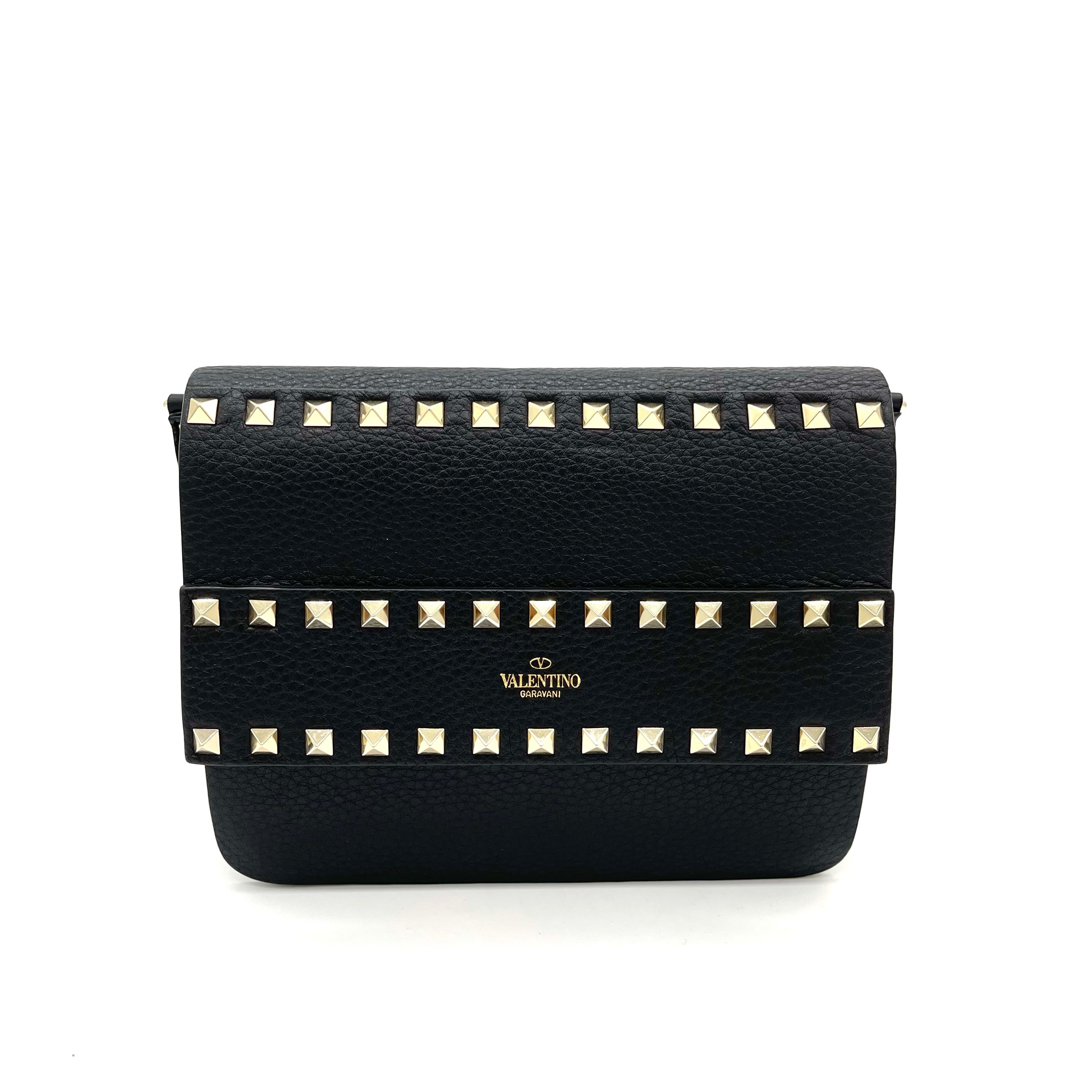 정품 VALENTINO GARAVANI 페블 송아지 가죽 락스터드 사이드 슬립 크로스바디(블랙 색상)입니다. 블랙 컬러의 섬세한 질감의 가죽으로 아름답게 제작된 시크한 크로스백입니다. 이 가방은 스터드 장식 테두리, 얇은 어깨 스트랩, 지퍼 포켓이 있는 스웨이드 내부로 열리는 전체 길이의 전면 플랩이 특징입니다.