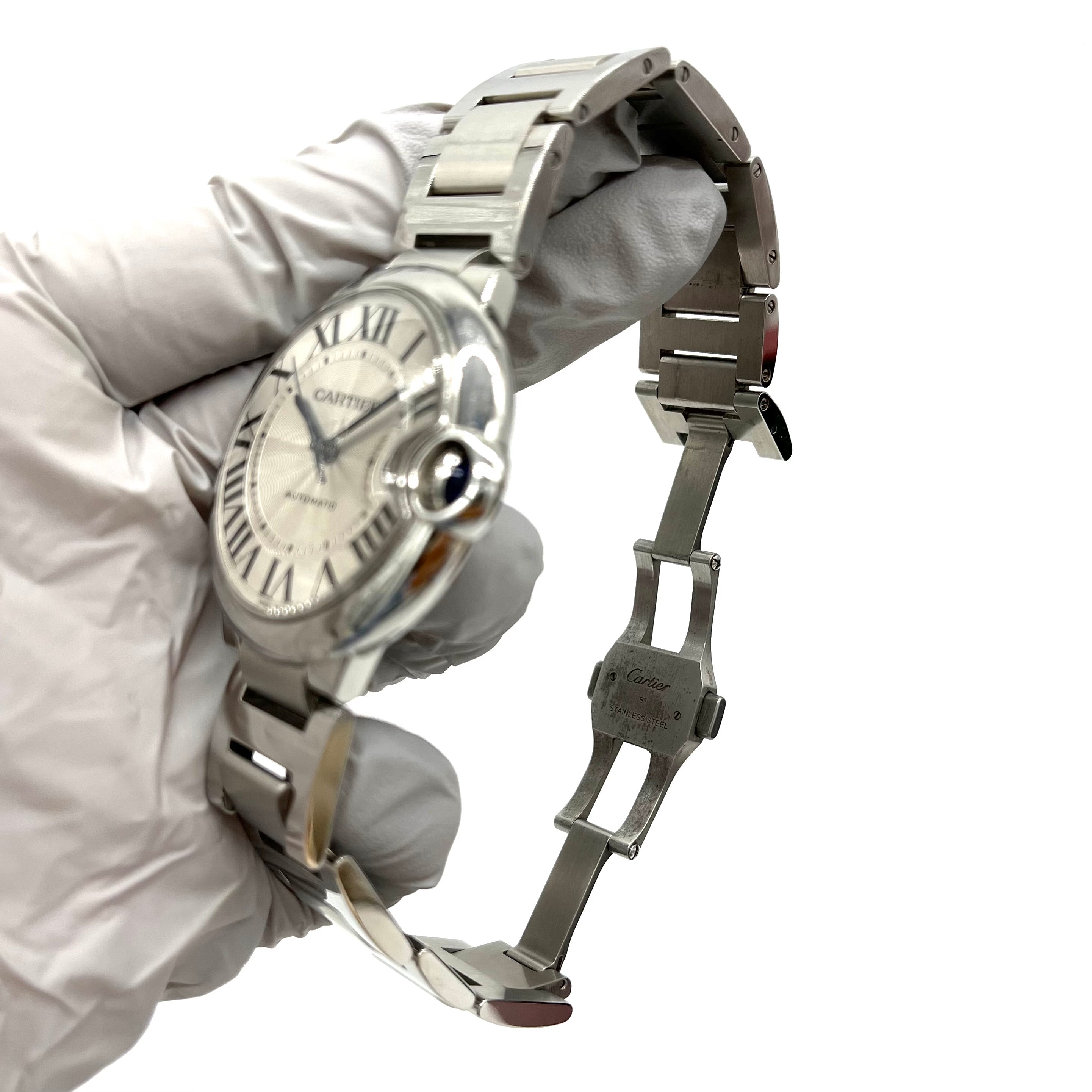 This is an authentic Ballon Bleu de Cartier Watch 42mm 3765. For sale is this stunning Cartier Ballon Bleu, a timeless piece that blends elegance and sophistication. Featuring a stainless steel case and a sleek silver dial, it’s accentuated by Roman numerals and blued steel hands, exuding a refined charm. This pre-owned watch comes complete with its original box, and it’s in excellent condition with minimal signs of wear. Perfect for everyday wear or as a standout accessory for special occasions, this is a must-have for any Cartier enthusiast. Don’t miss the chance to own this meticulously cared-for beauty—check it out now!