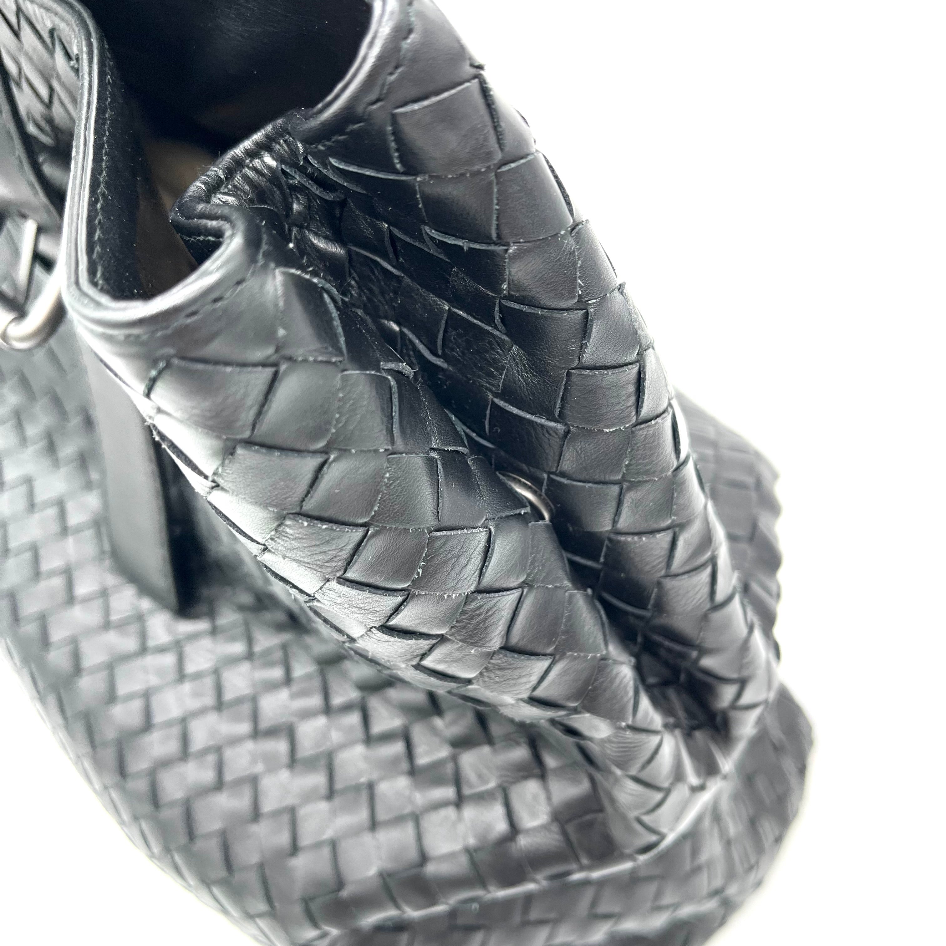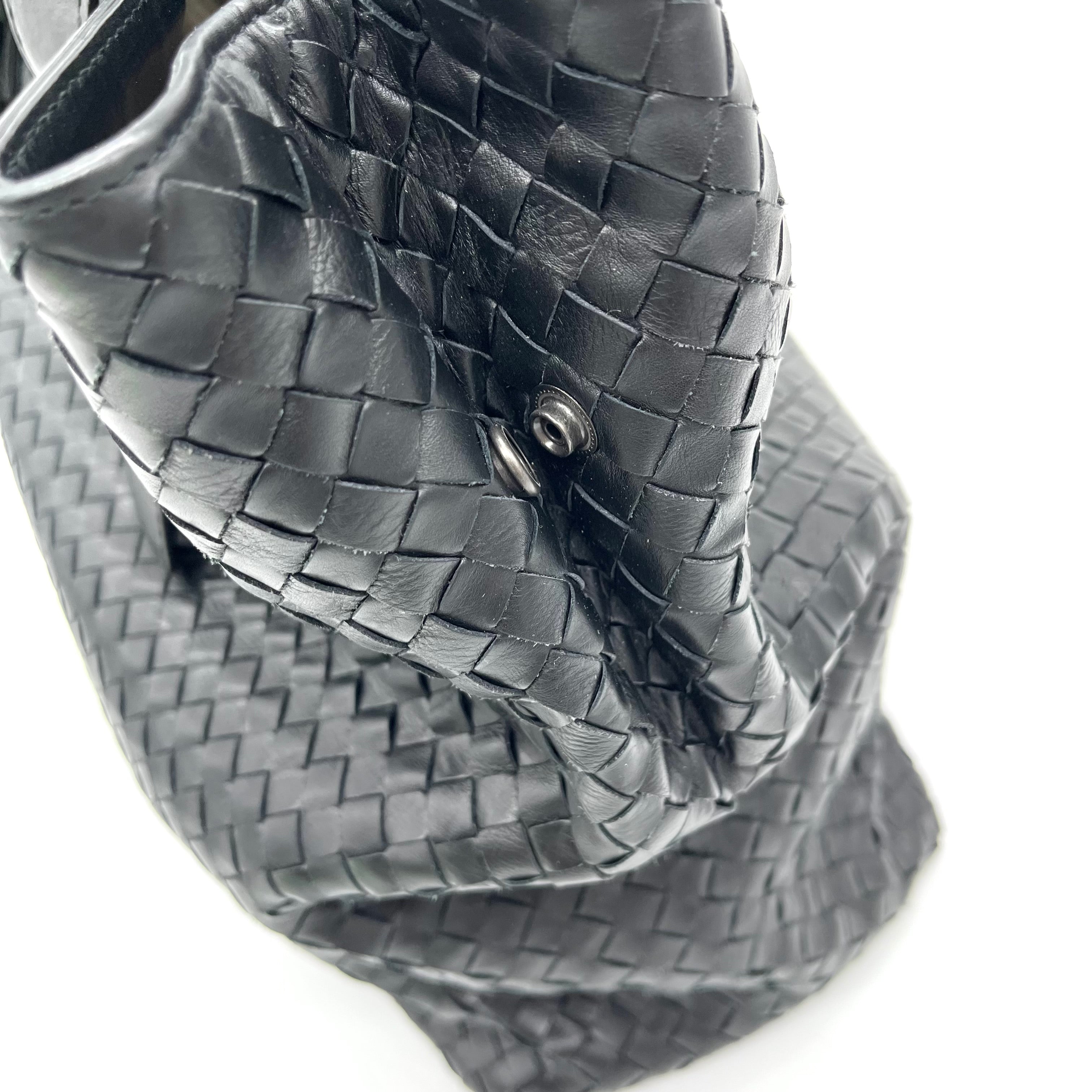 This is the authentic Bottega Veneta Nappa Intrecciato Belted Tote. The Bottega Veneta Nappa Intrecciato Belted Tote epitomizes understated luxury with its iconic intrecciato woven nappa leather craftsmanship, featuring a spacious structured silhouette in a versatile black hue, complemented by a chic belted detail for added sophistication, and finished with gold-tone hardware, while offering a gently used condition with its original dust bag included, this masterpiece from the renowned Italian house blends timeless elegance and functionality, perfect for the discerning fashion enthusiast.