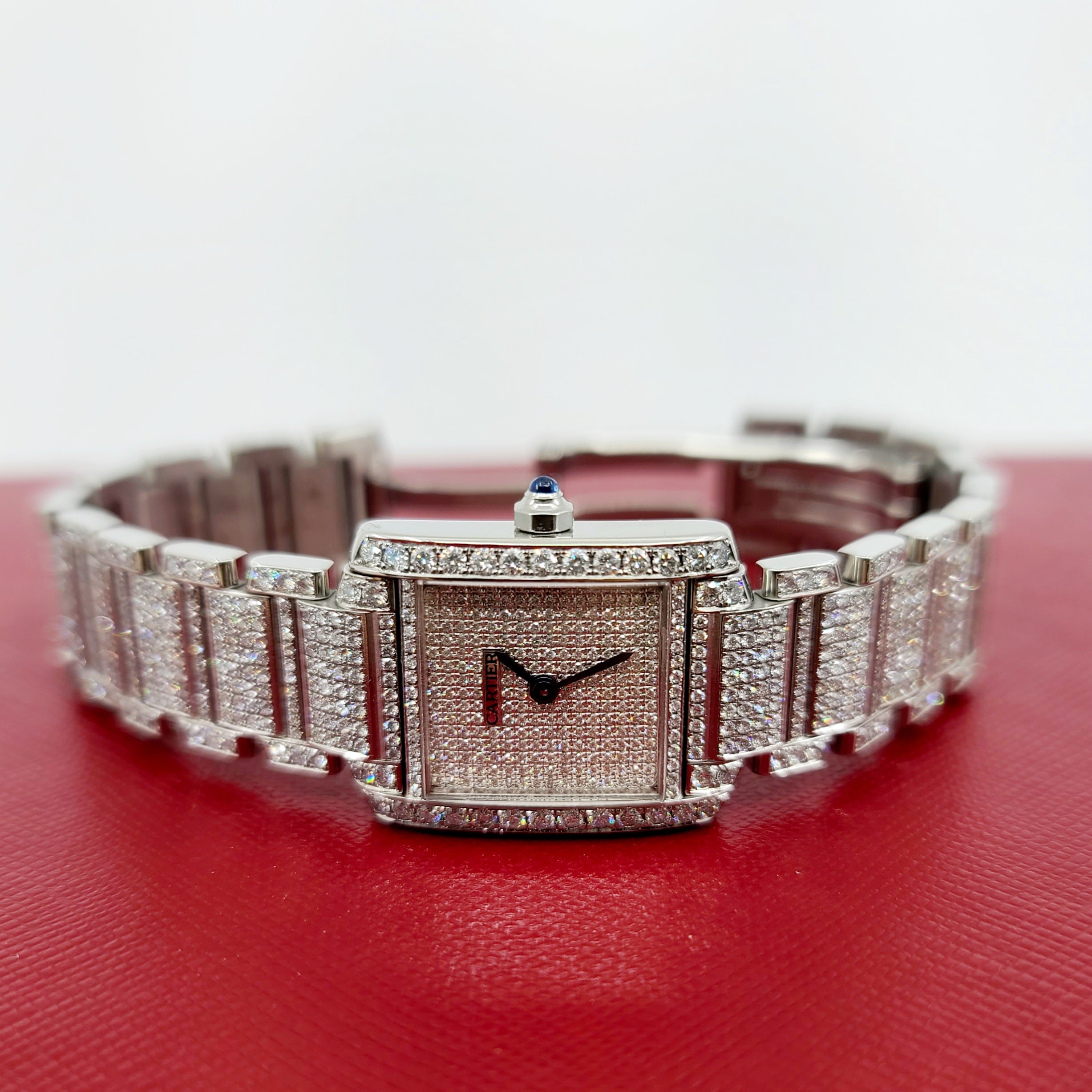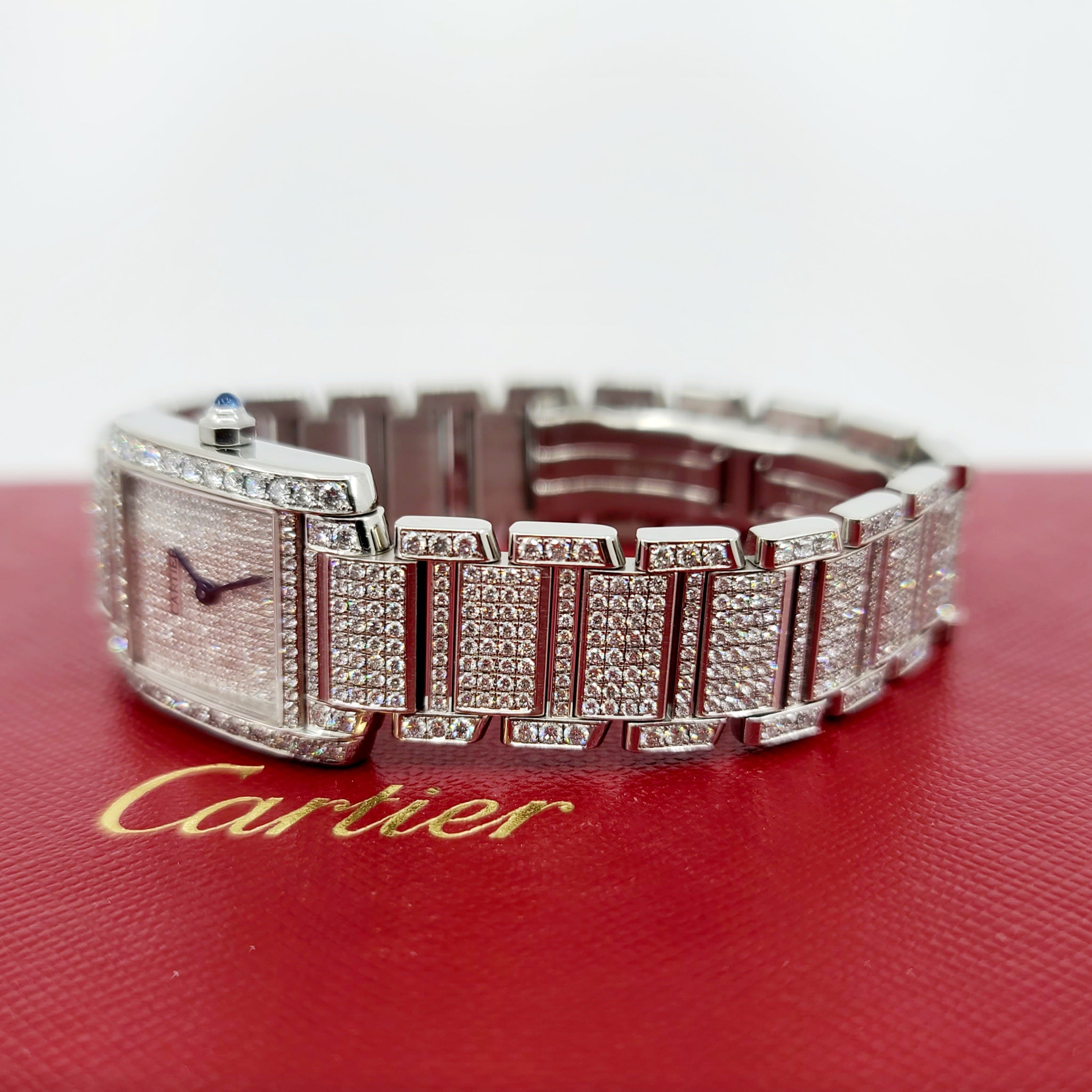매우 정교하고 잘 배열된 다이아몬드 세팅이 돋보이는 멋진 시계입니다.