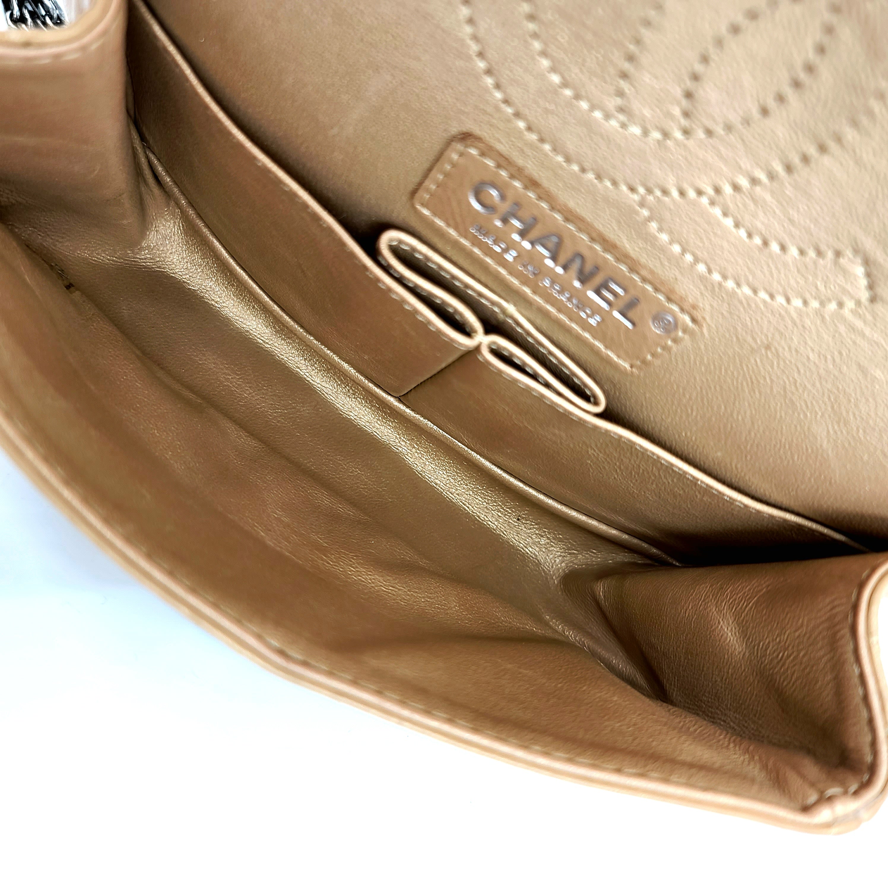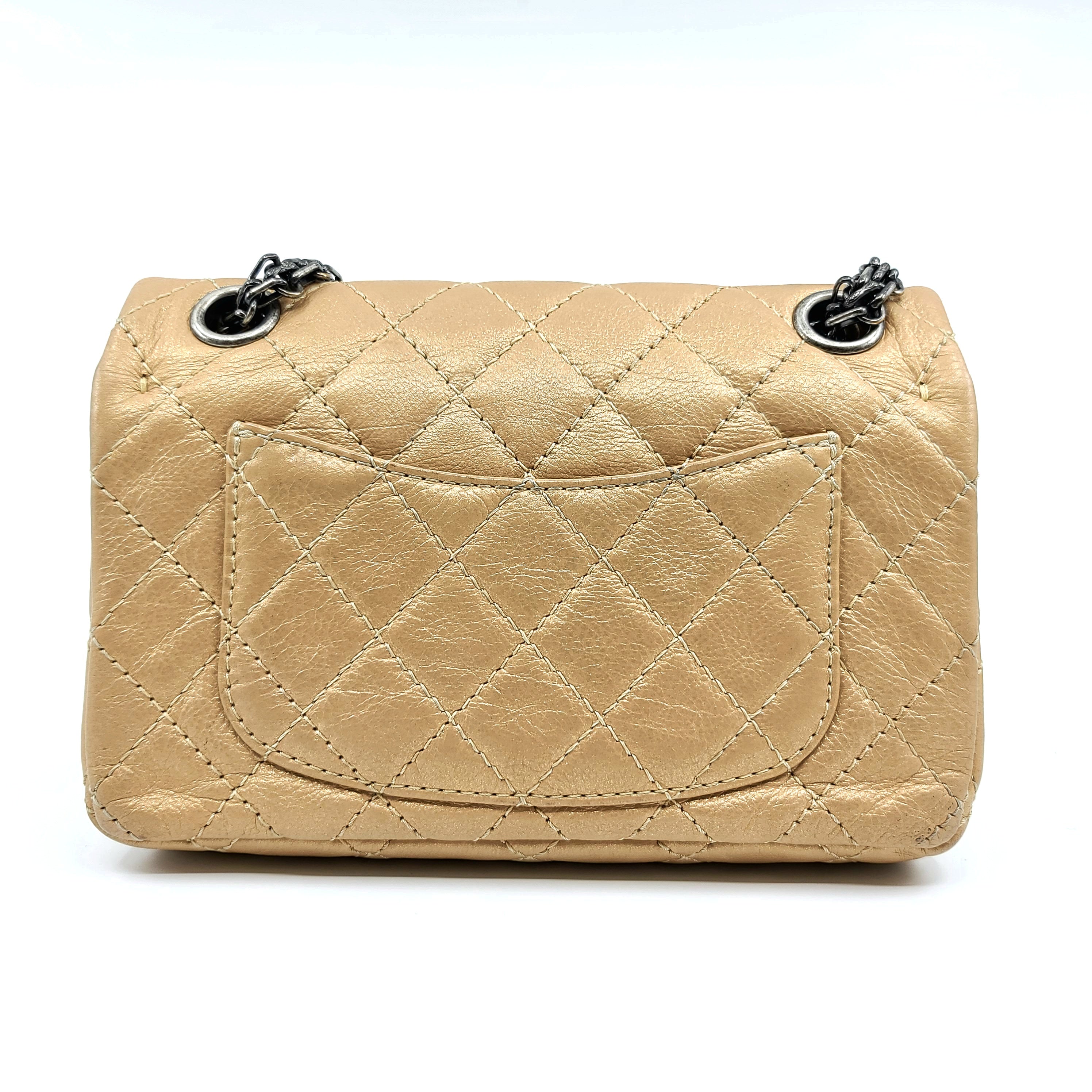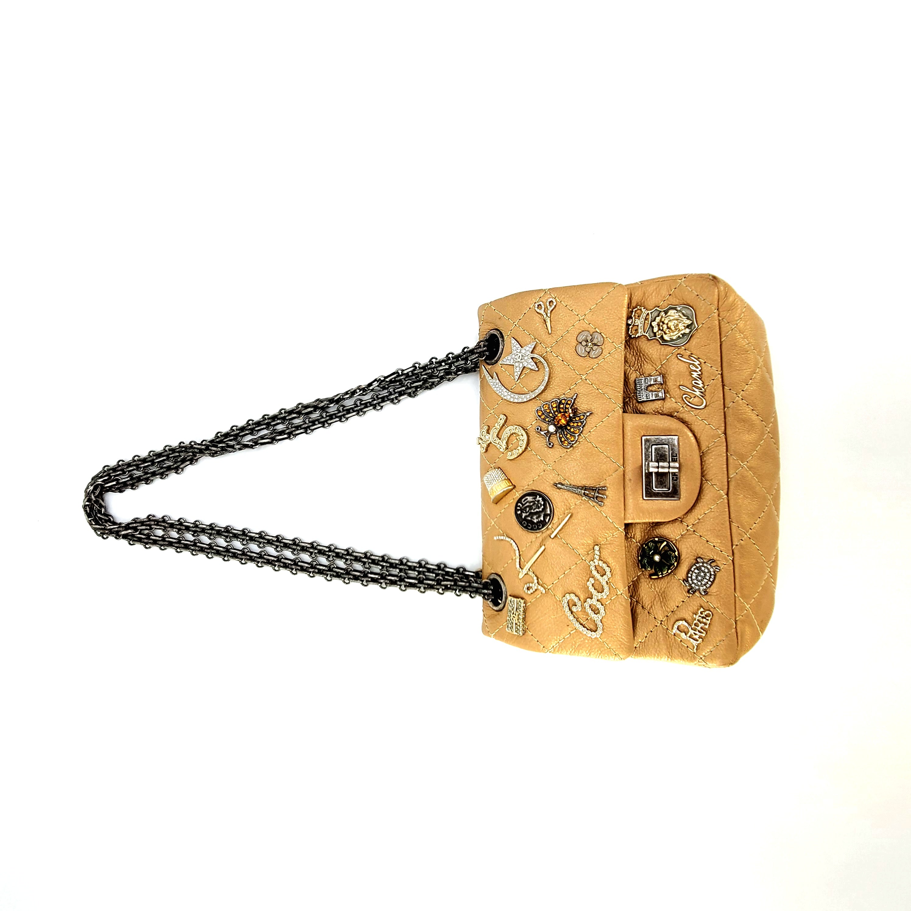 CHANEL 골드 숙성 메탈릭 송아지 가죽 럭키 참 2.55 재발행 224 더블 플랩 백
