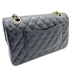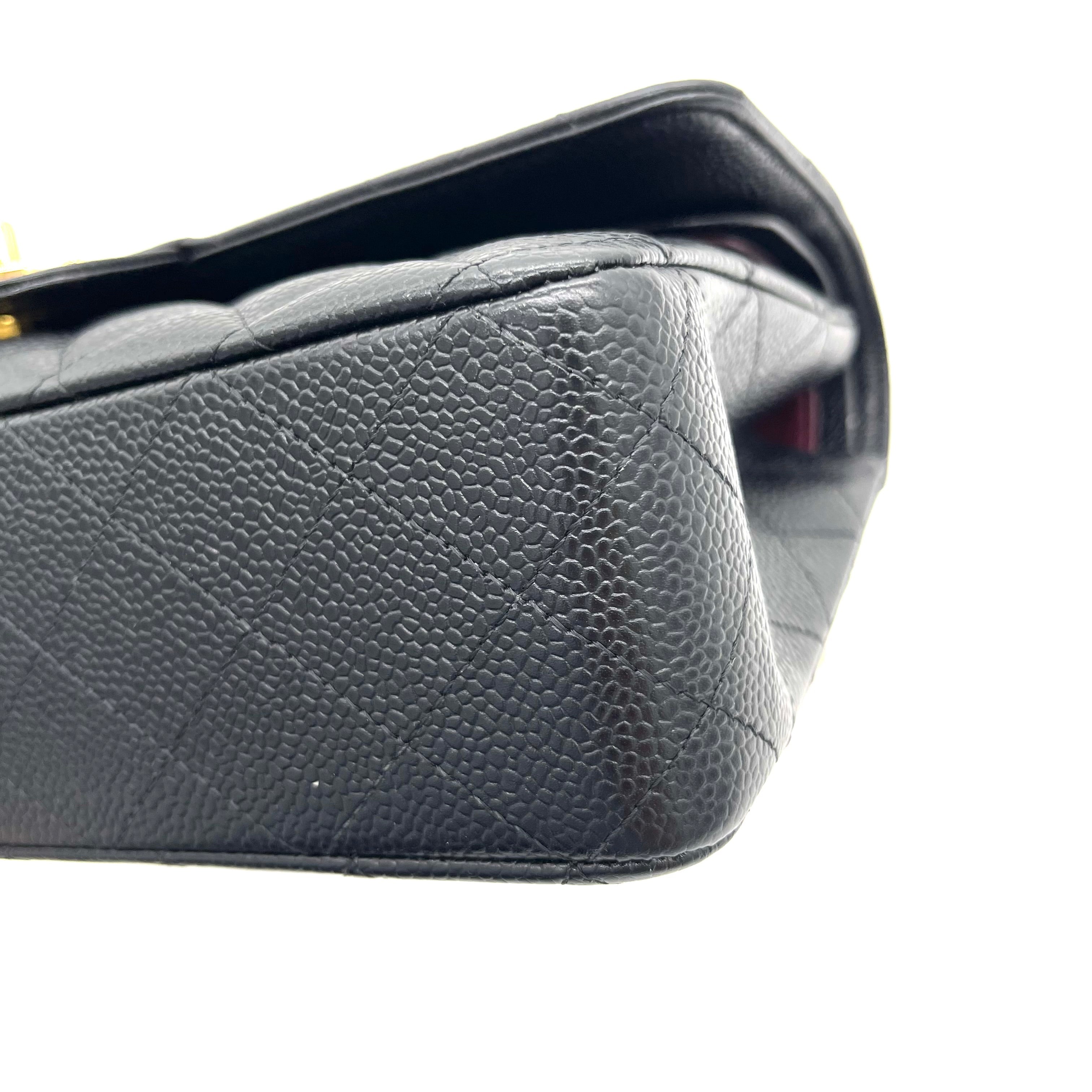 Elevate your style with the timeless elegance of the CHANEL Medium Classic Double Flap Bag. Crafted from durable black caviar leather with signature diamond quilting, this iconic bag features a double flap design, CC turnlock closure, and a versatile chain strap that can be worn single or doubled. Perfect for day-to-night wear, it offers a luxurious burgundy leather interior with multiple compartments for your essentials.