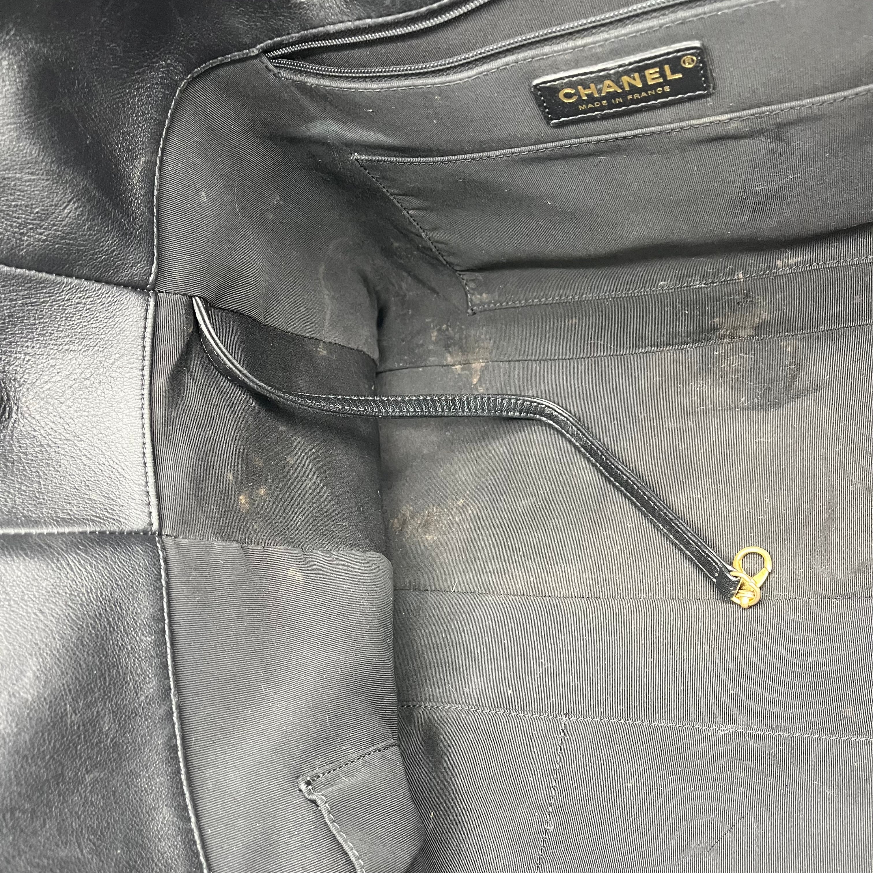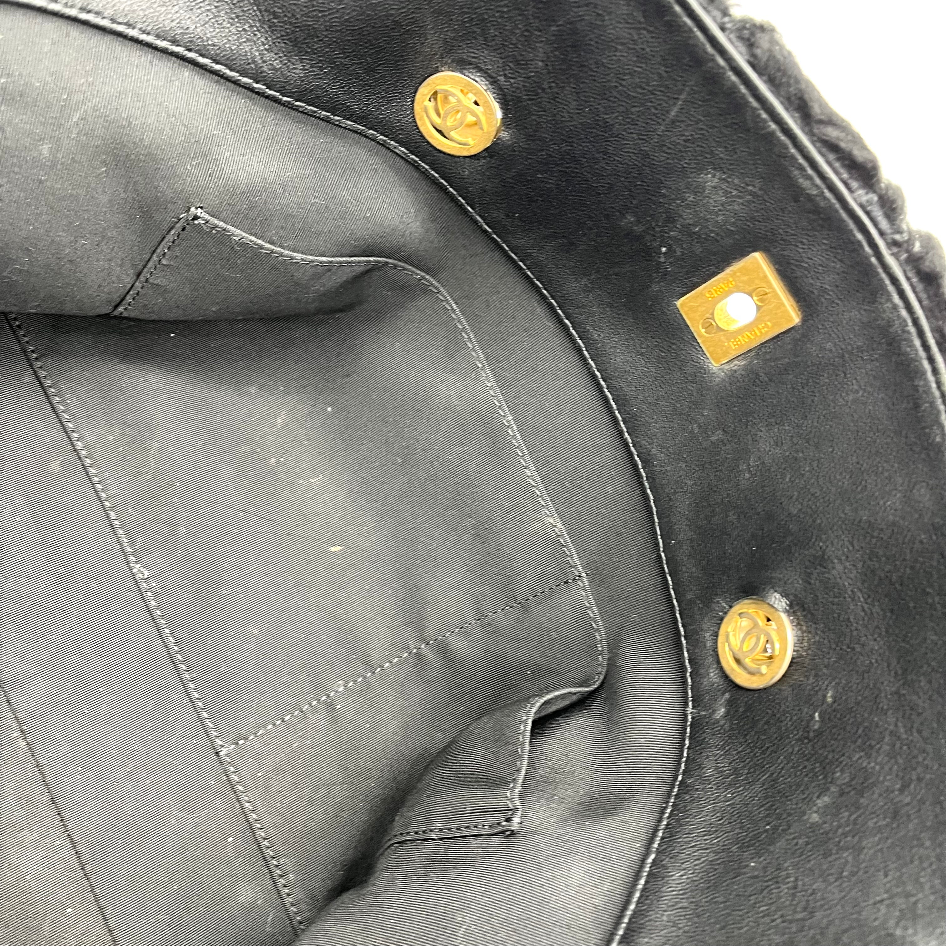 The condition of this Chanel CC Chain Shopping Tote Quilted Shearling with Tweed Large is worn out. Interior of the bag has stained by cosmetics products.