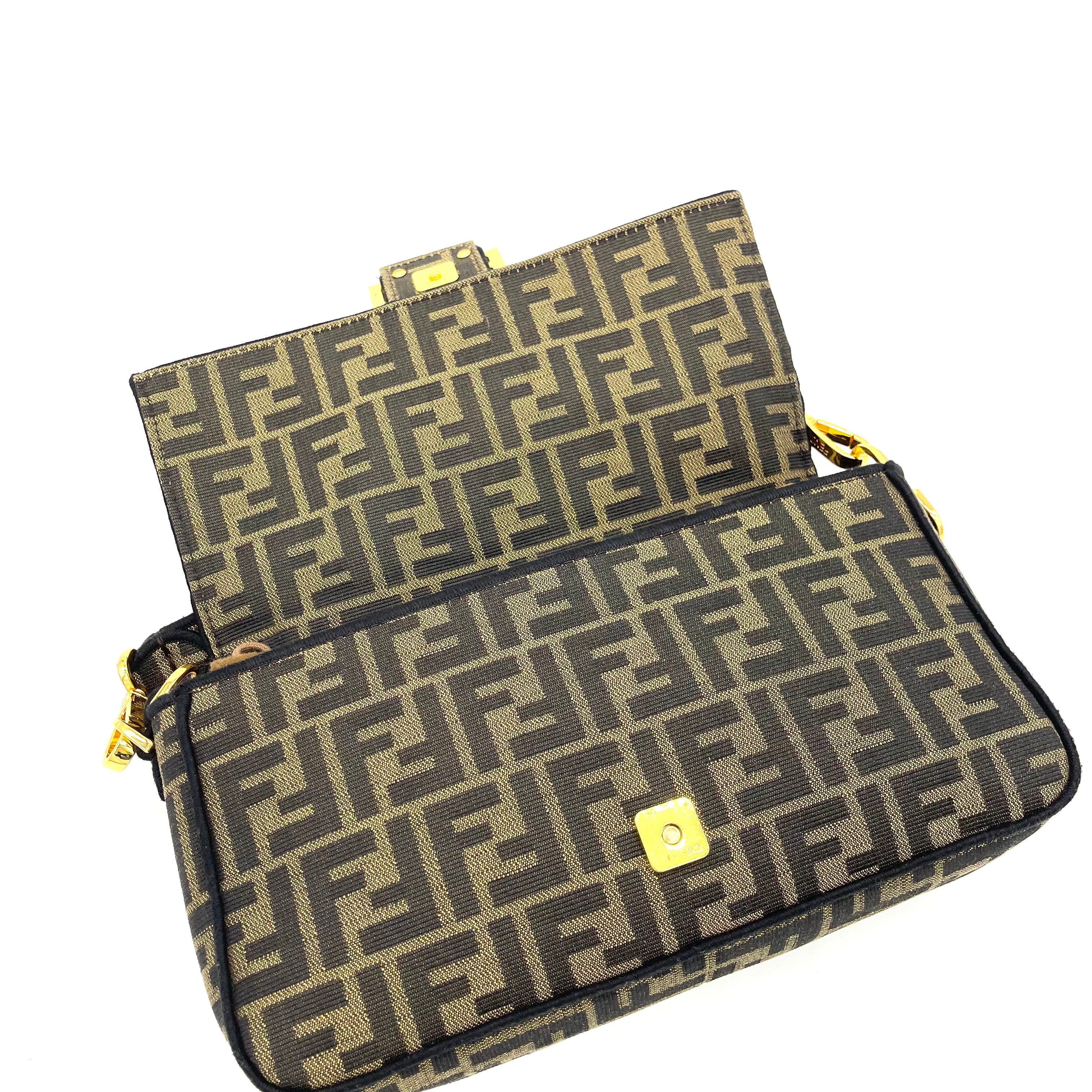 Made of jacquard fabric with the iconic FF motif in brown, decorated with an FF clasp and trimmed with black embroidery.
