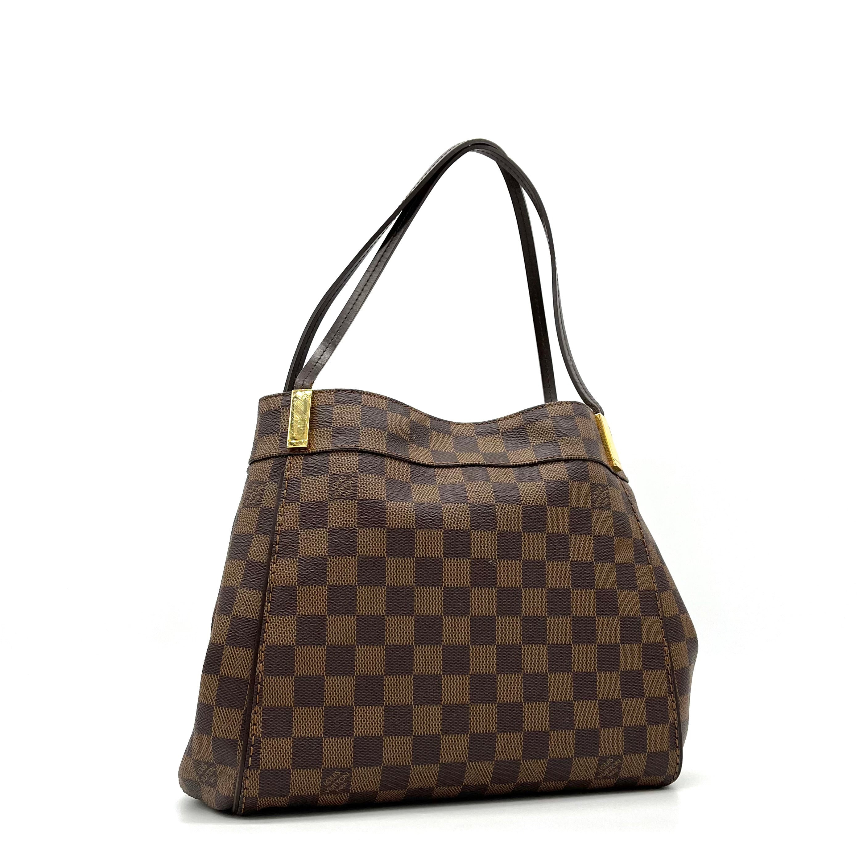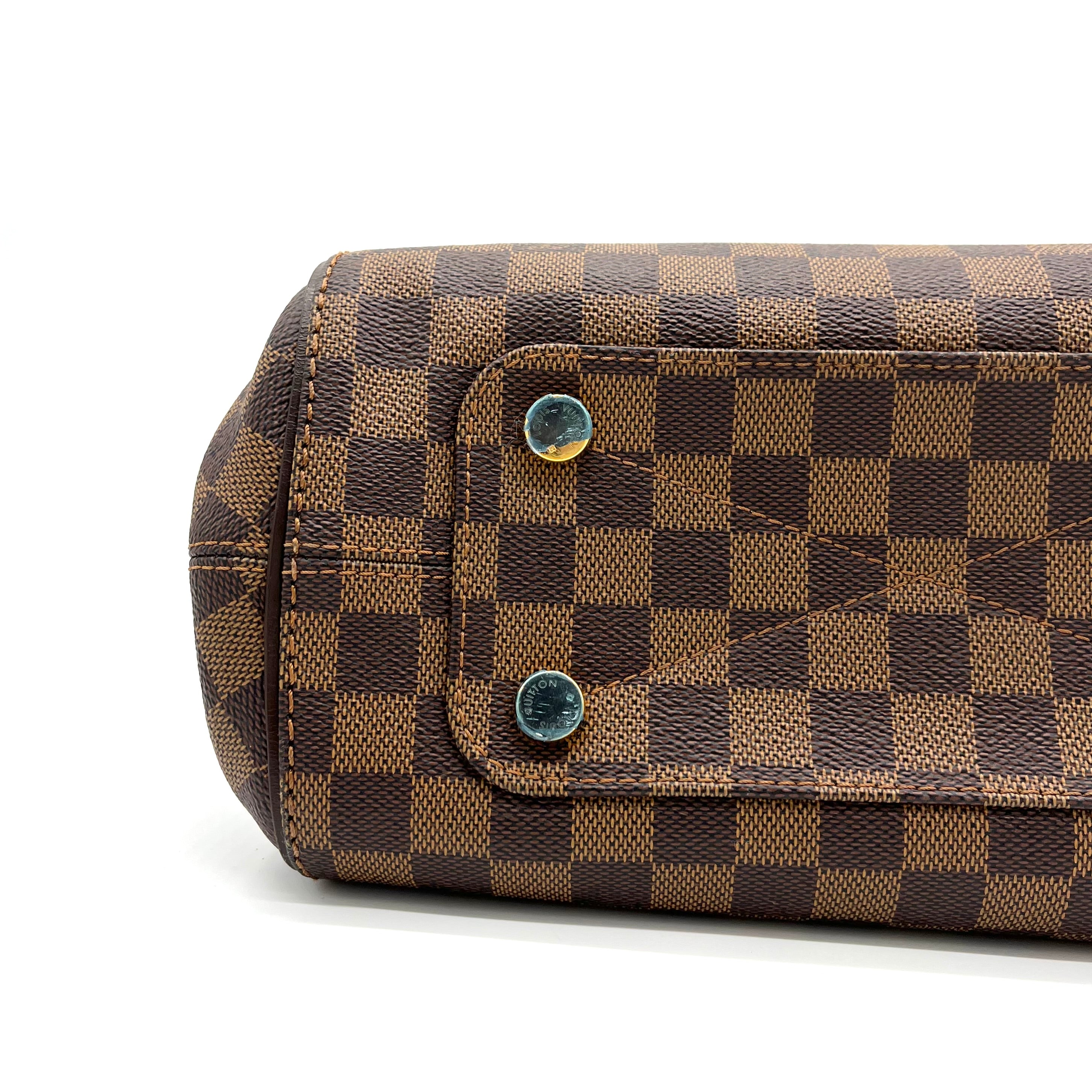 This authentic Louis Vuitton Damier Ebene Marylebone PM Bag defines timeless elegance. This stylish messenger bag is crafted from traditional brown Damier Ebene checkered coated canvas and brass hardware. It features smooth thin, flat leather shoulder straps and side snaps, allowing the bag to expand.