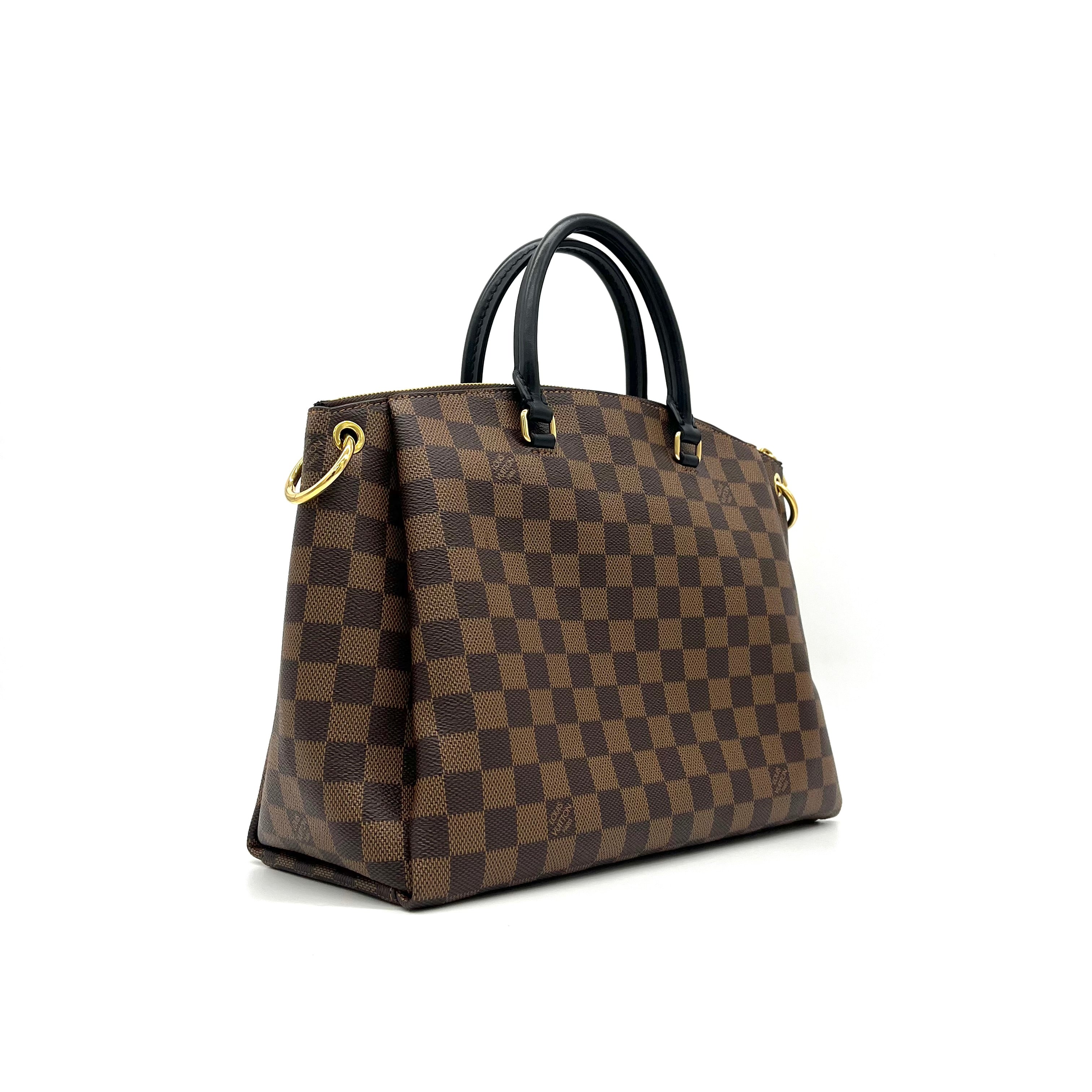 The condition of this Louis Vuitton LOUIS VUITTON Damier Ebene Odeon Tote MM Black is excellent condition but no strap comes with the bag.