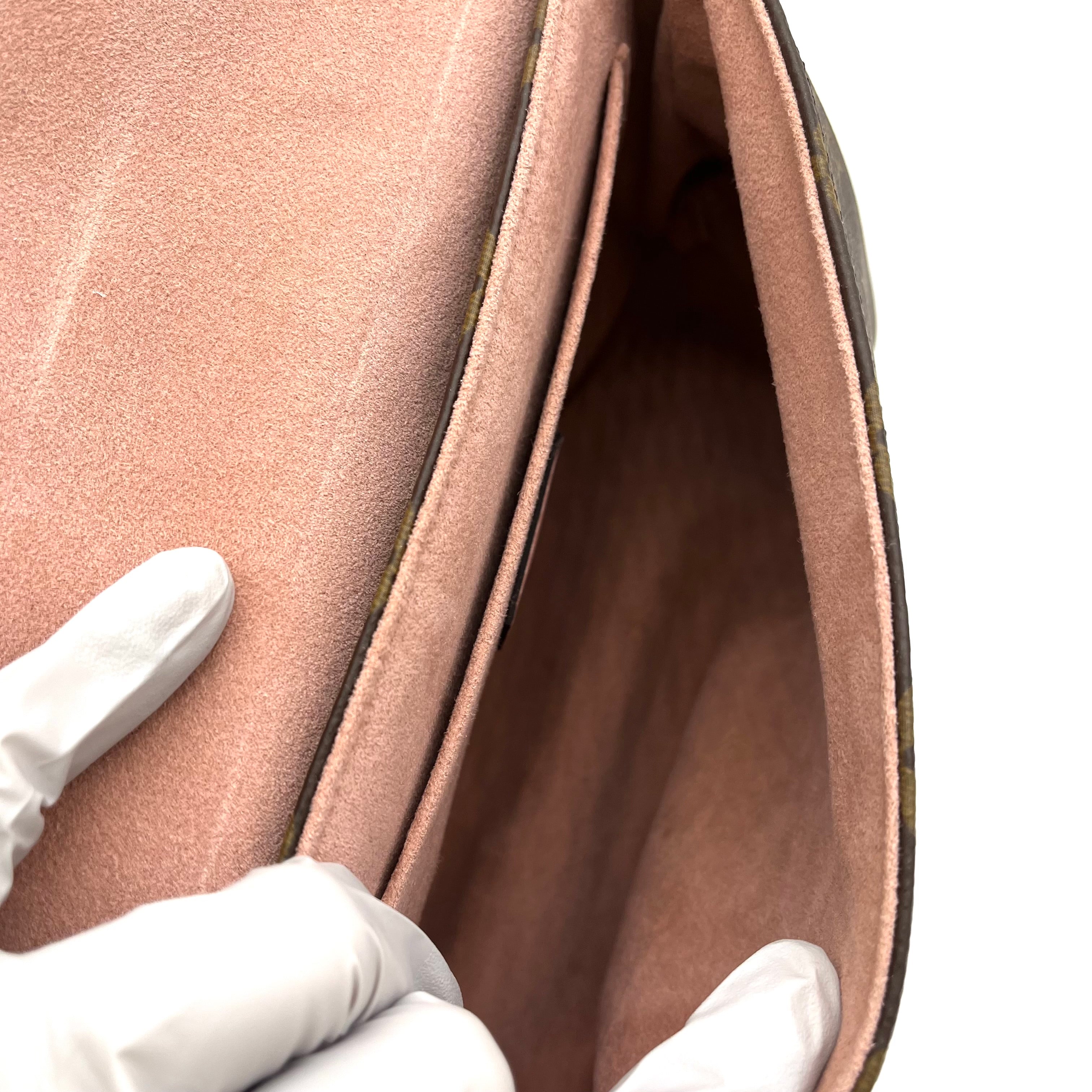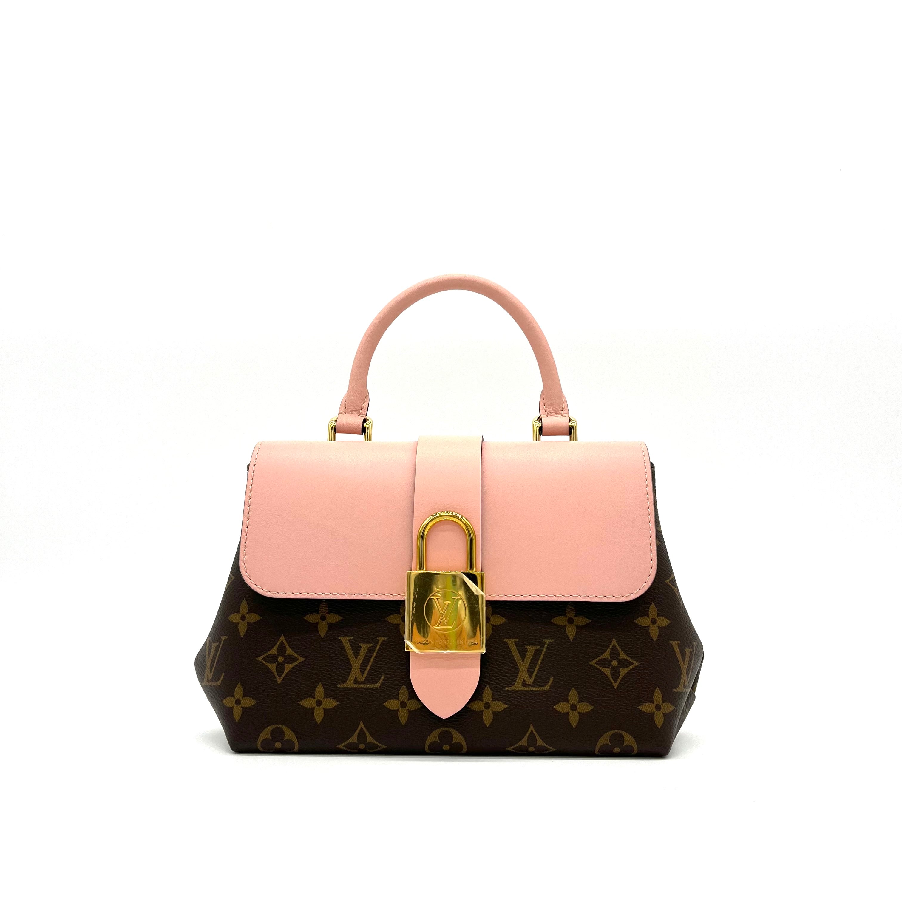 This is an authentic LOUIS VUITTON Monogram Locky BB in Rose Poudre. This chic handbag is crafted with a signature monogram coated canvas with a pink calfskin flap top.This unique Monogram Locky BB in Rose Poudre has two popped side design. It features a top handle and an optional leather shoulder strap with polished gold-tone hardware. The flap opens to a pink microfiber interior with a flat pocket.