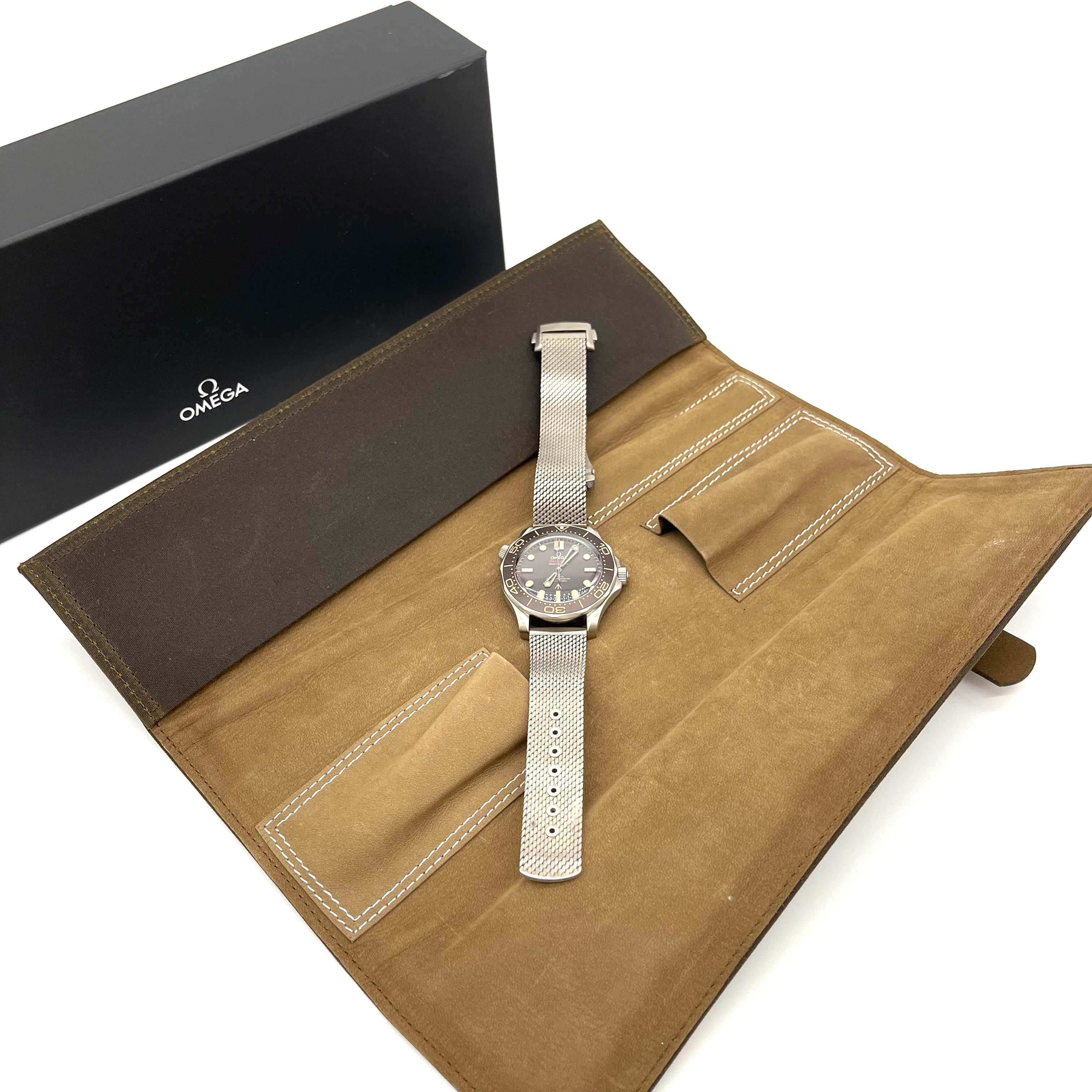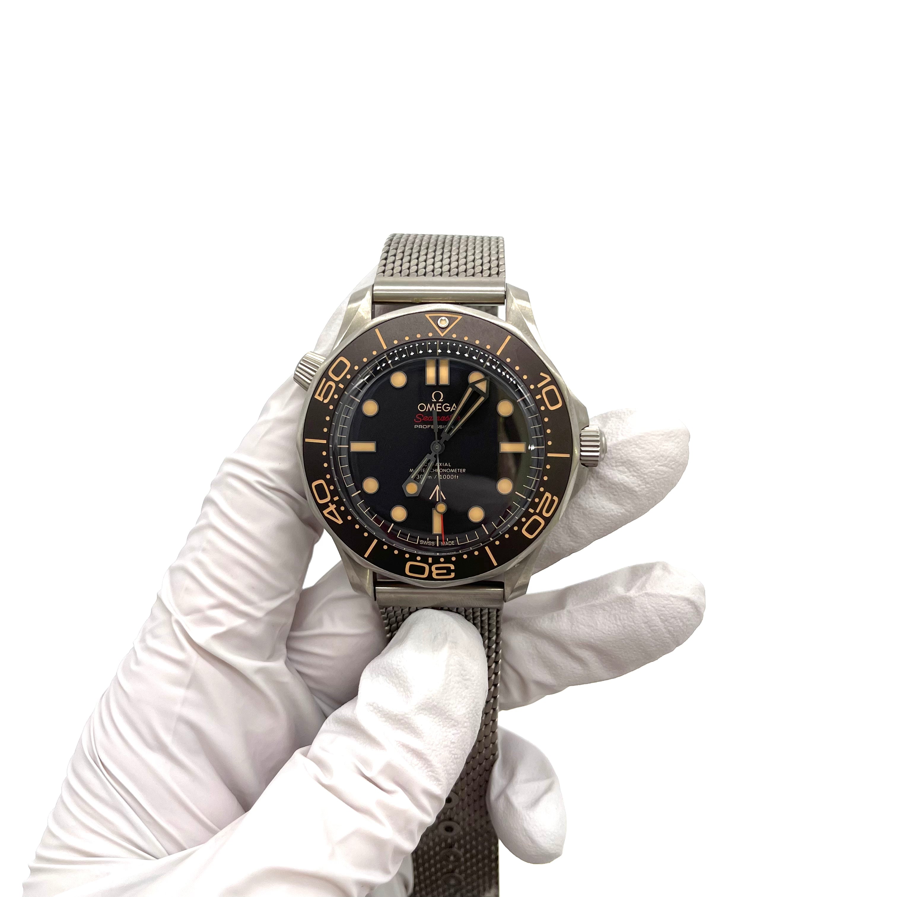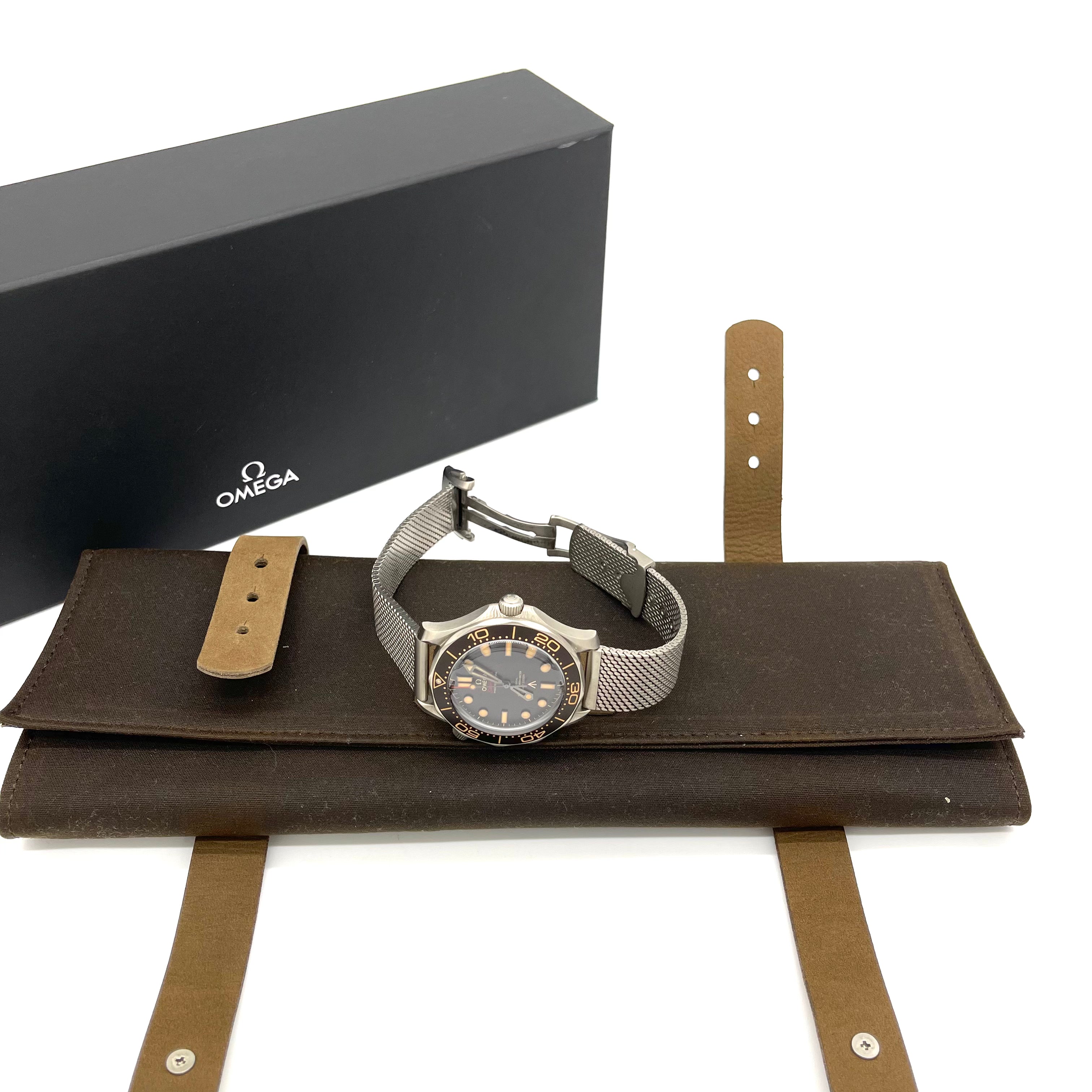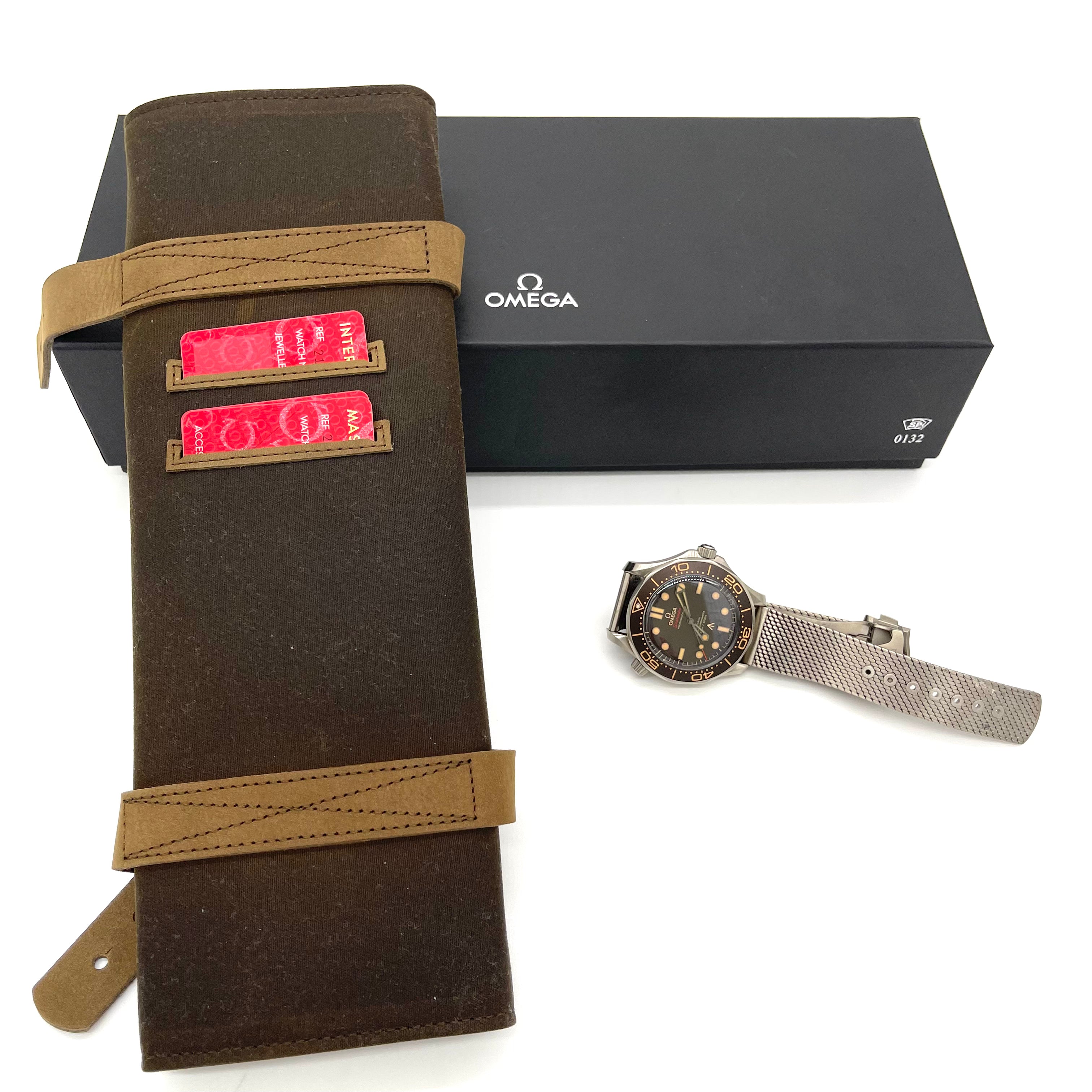 노 타임 투 다이 (No Time To Die) 의 007 시계와 동일한 이 42mm 씨마스터는 튼튼하면서도 가벼운 2등급 티타늄 소재로 제작되었으며, 브라운 트로피컬 알루미늄 베젤 링과 다이얼을 자랑합니다.