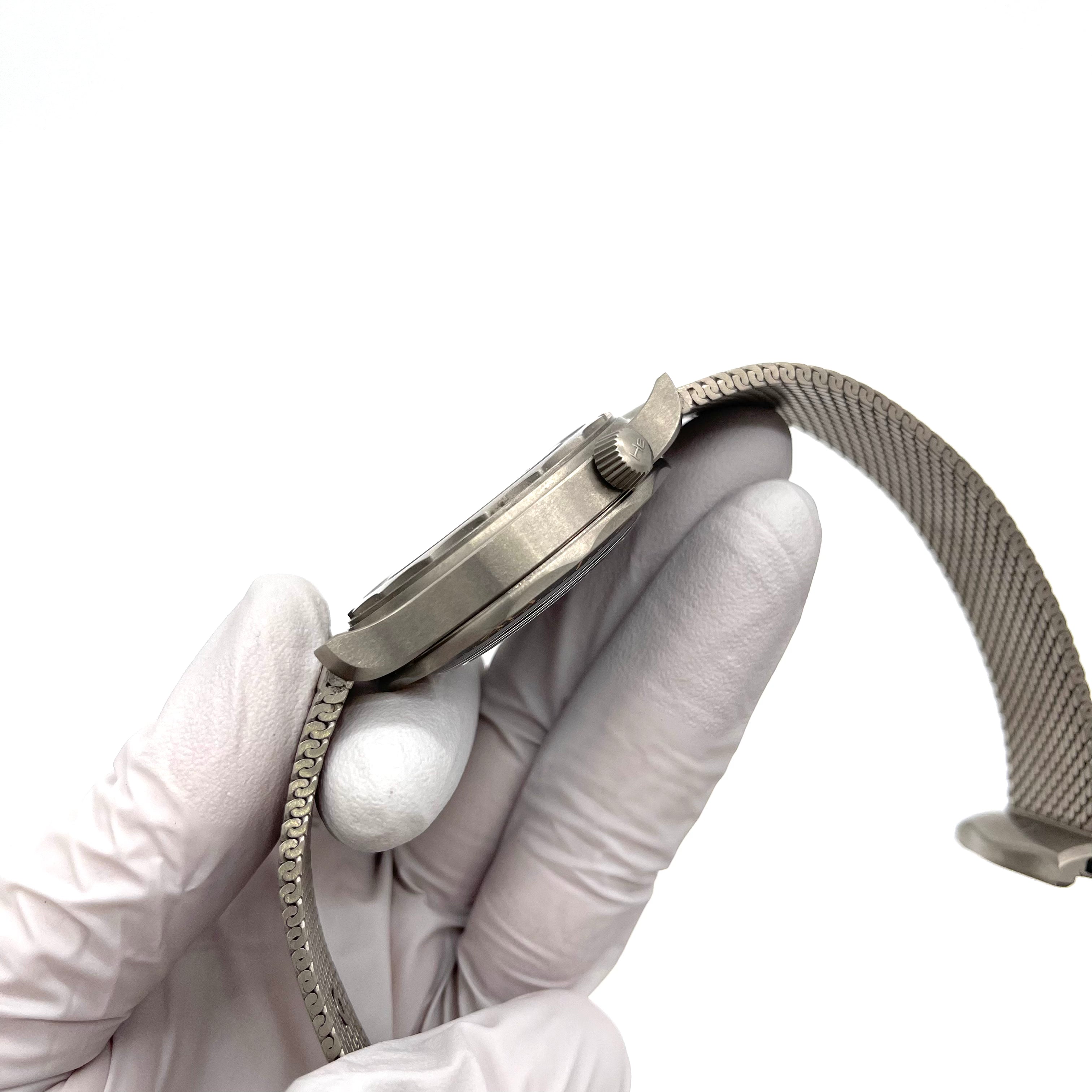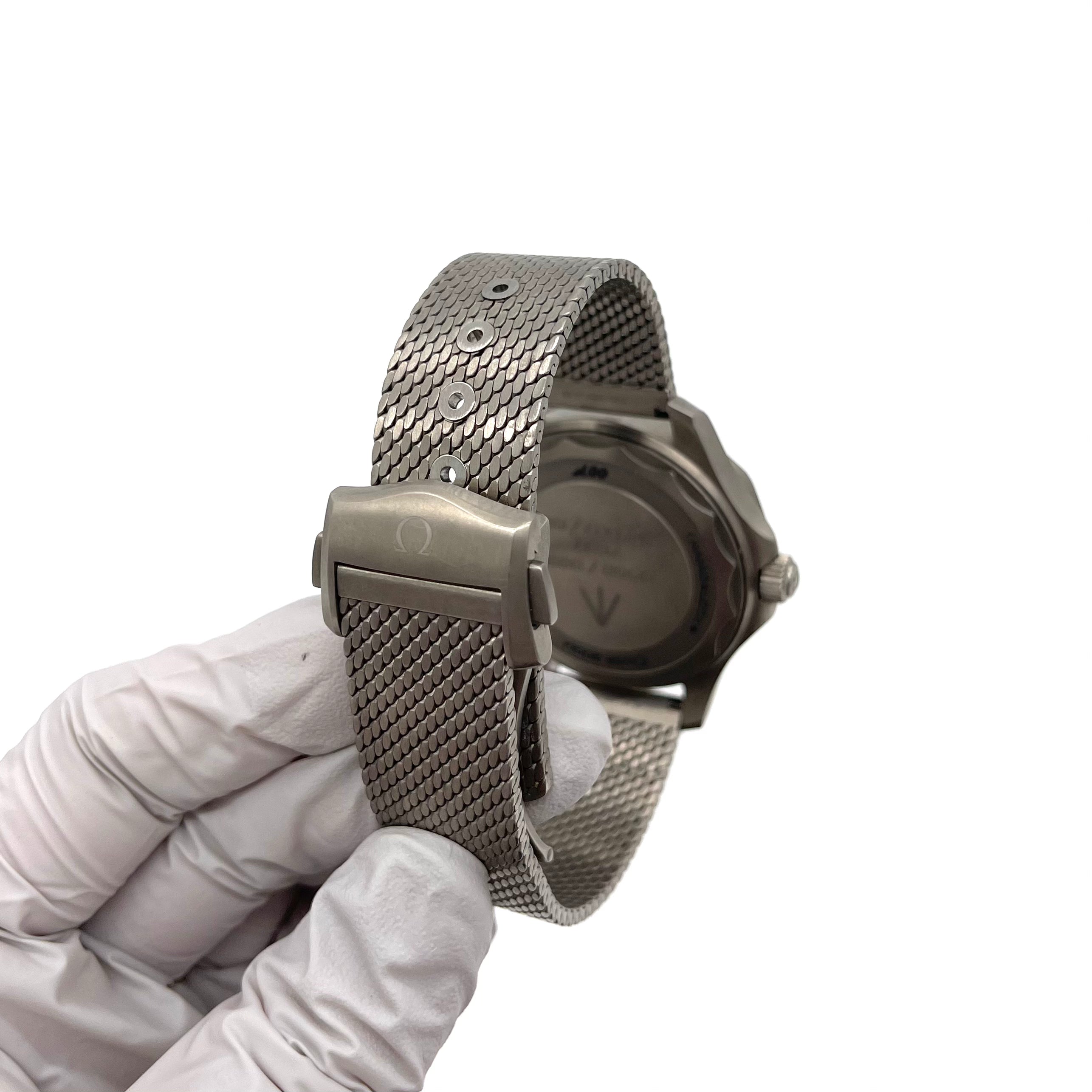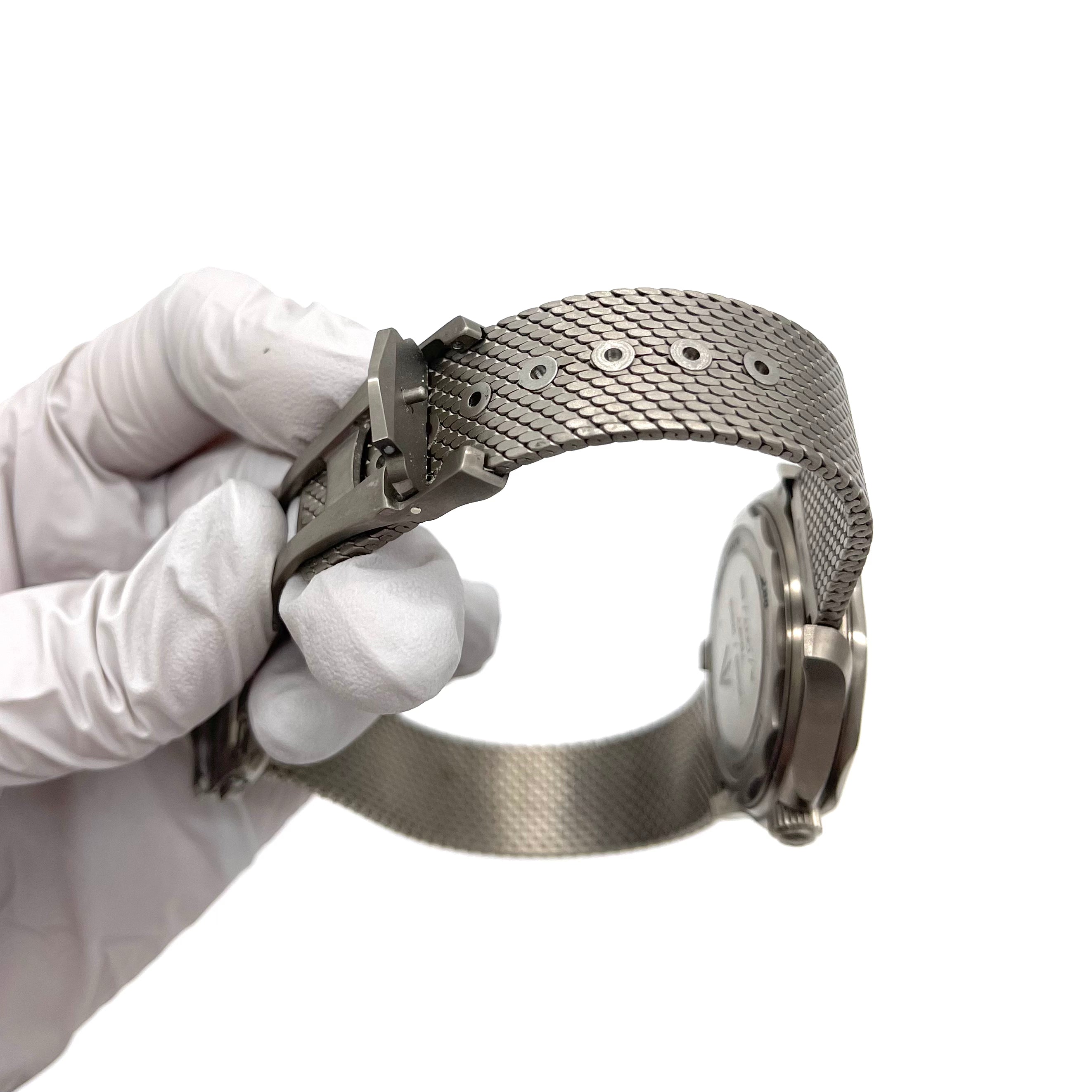 사파이어 크리스탈 글래스의 돔형 덕분에 표준 다이버 300M 모델보다 약간 더 슬림하며, 혁신적인 조절 가능한 버클이 있는 2등급 티타늄 메시 브레이슬릿과 함께 제공됩니다.