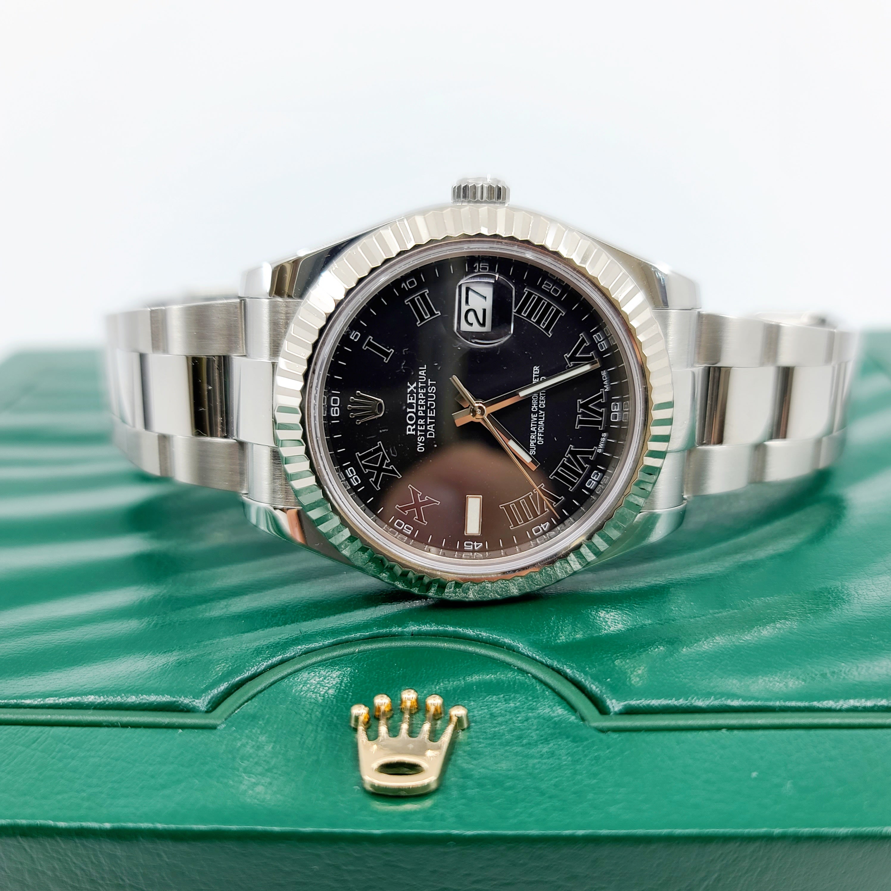 특징: 12시간 다이얼, 크로노미터, 날짜 표시기, 야광 시계 바늘, 야광 인덱스, 사파이어 크리스탈, 스크류다운 크라운, 초침, 자동식, 스위스 제작, 스위스 무브먼트, 방수