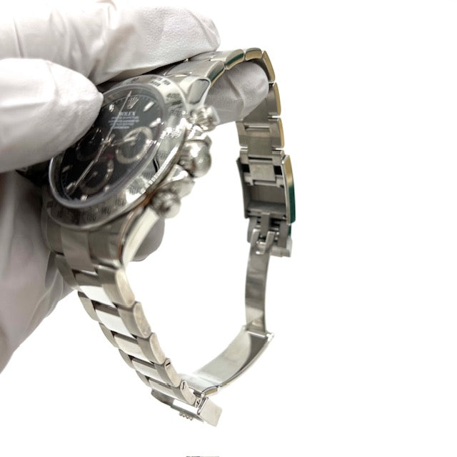 This is an authentic Rolex 40MM Daytona Stainless Watch 116520LN 2016. Born for racing drivers, the Rolex Cosmograph Daytona perfectly blends sportiness with elegance. Its chronograph function and tachymetric bezel are ideal for measuring time and calculating speed, while the stainless steel bracelet offers both durability and comfort. The timeless design and exceptional performance have cemented the Rolex Daytona as an icon of luxury watches. Discover the Rolex Cosmograph Daytona today.