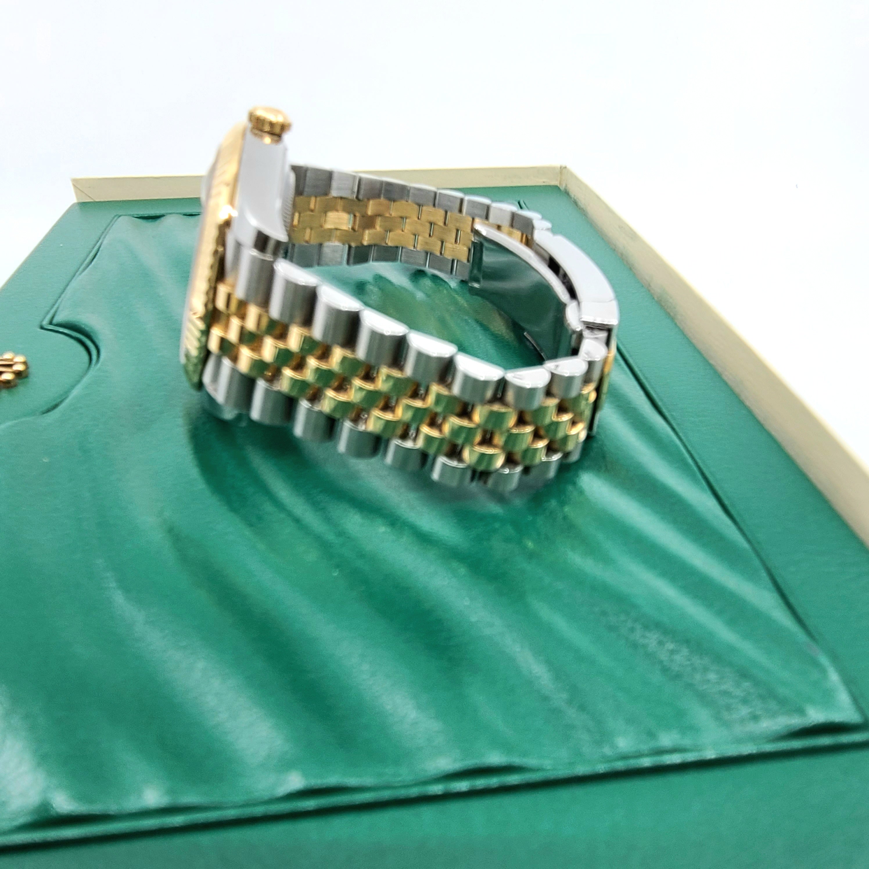 다이얼에는 18캐럿 골드 세팅에 다이아몬드가 세팅되어 있습니다. 케이스 측면과 러그의 빛 반사는 홈이 있는 베젤이 장착된 41mm 오이스터 케이스의 우아한 프로필을 강조합니다. 미학적 측면에서 Datejust는 여러 시대를 거쳐 왔으며, 특히 전통적인 버전에서 가장 인정받고 인정받는 시계 중 하나가 되는 지속적인 코드를 유지하고 있습니다.