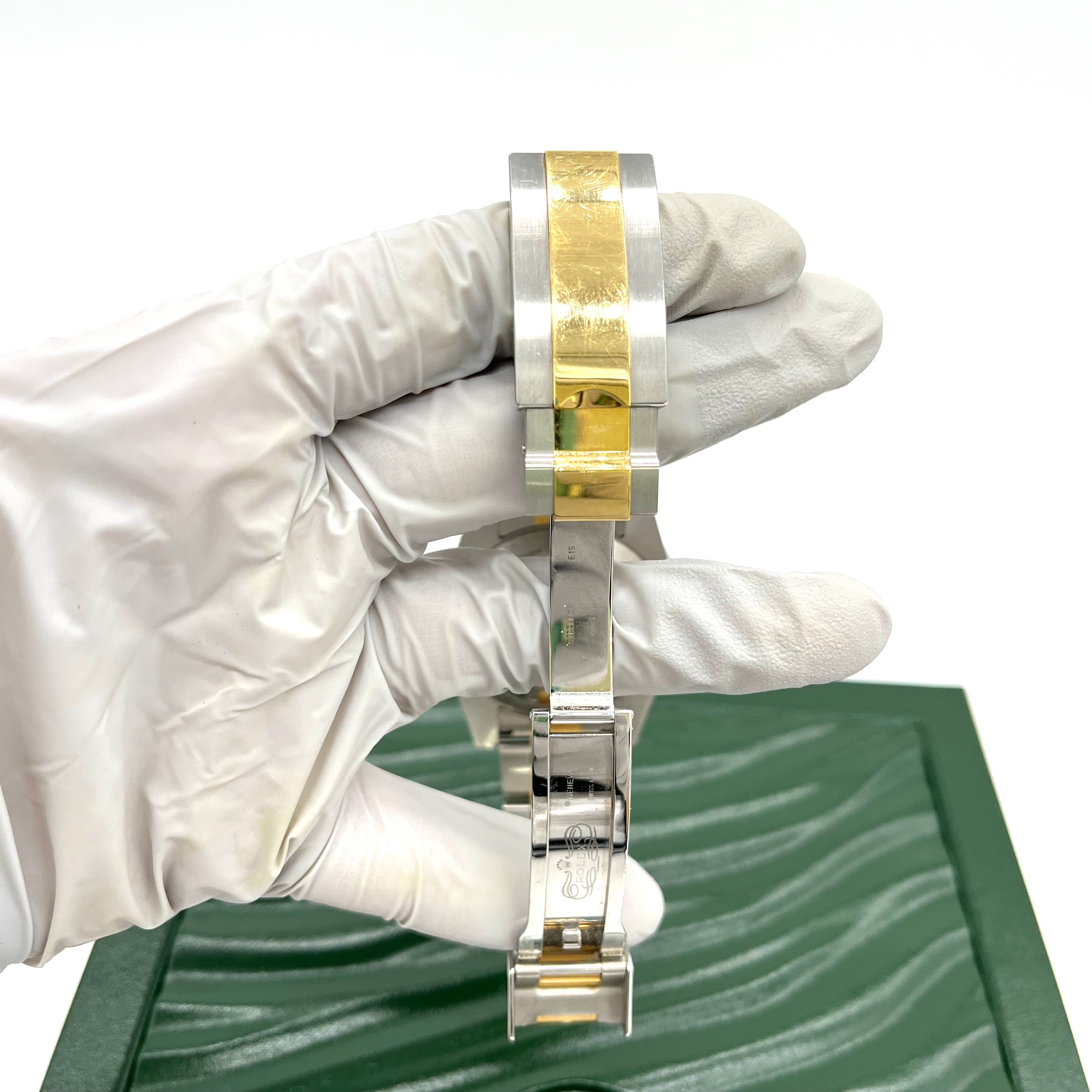 The Rolex Submariner Date is designed with a 40mm 18-carat yellow gold and stainless steel case with oyster architecture that features a blue rotating ceramic bezel. The rich blue dial features date display and luminescent hour markers and hands which makes it legible underwater and in dark environments. The watch is housed on an Oyster bracelet with an Oysterlock clasp.
