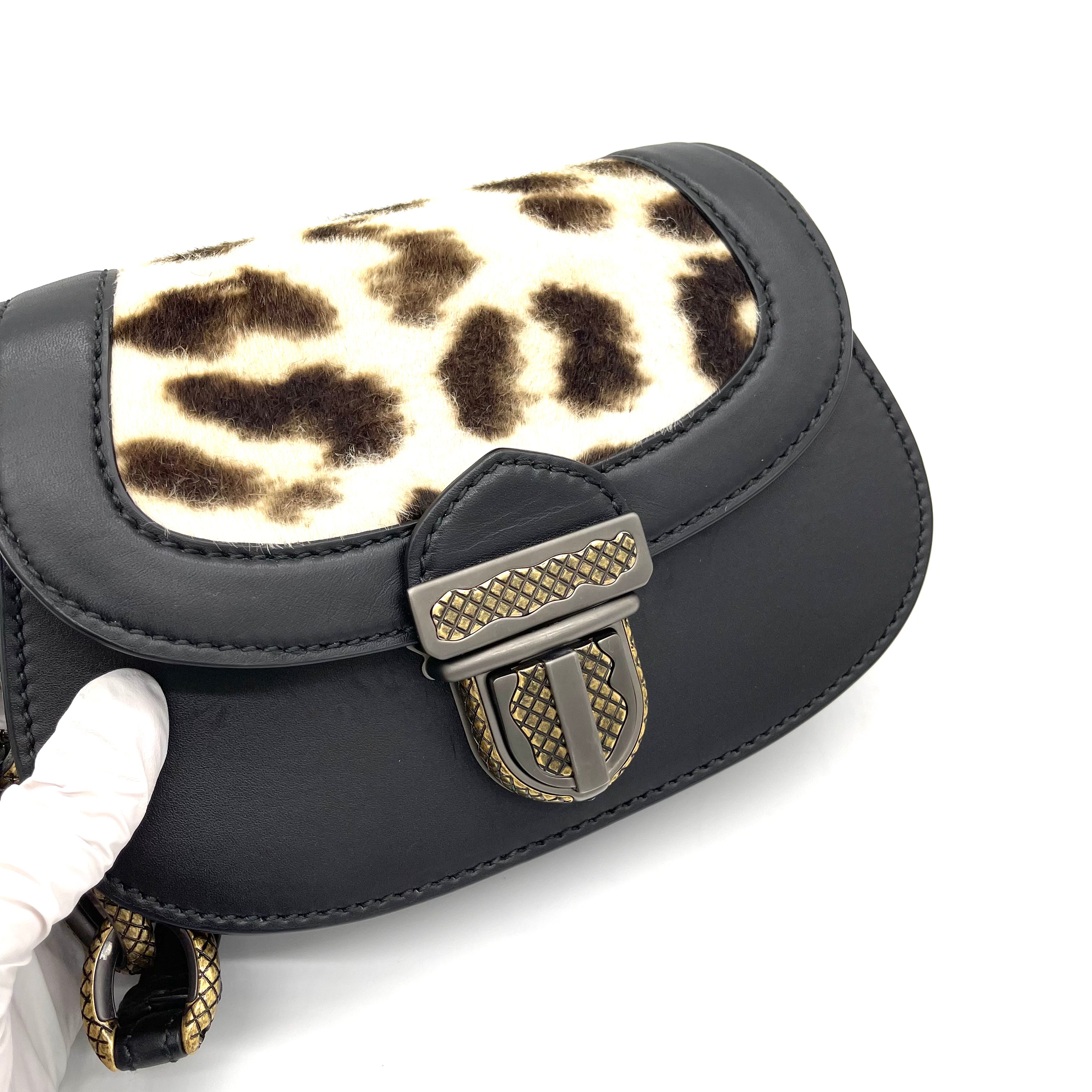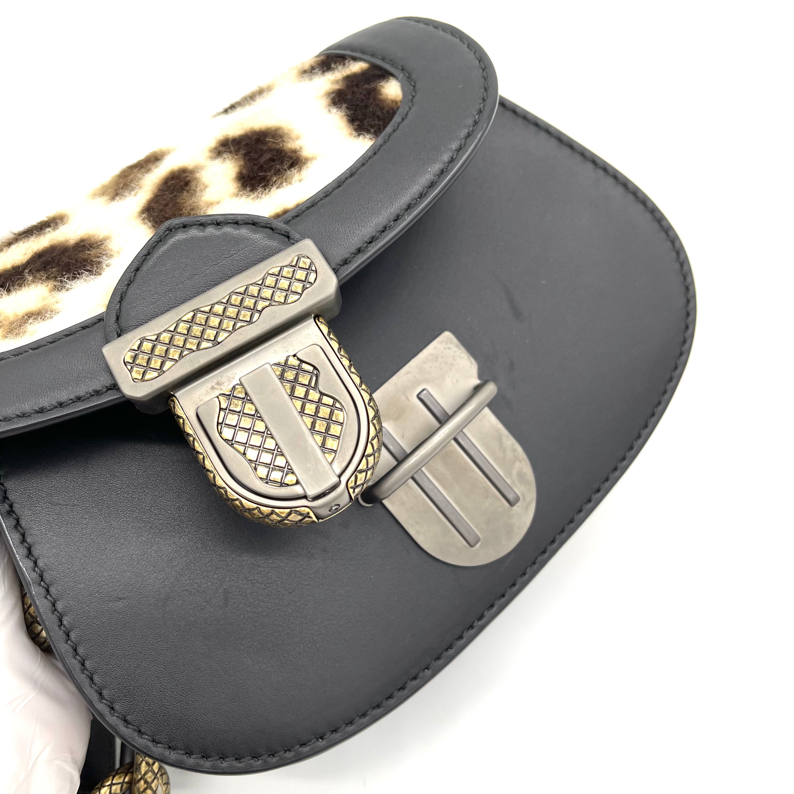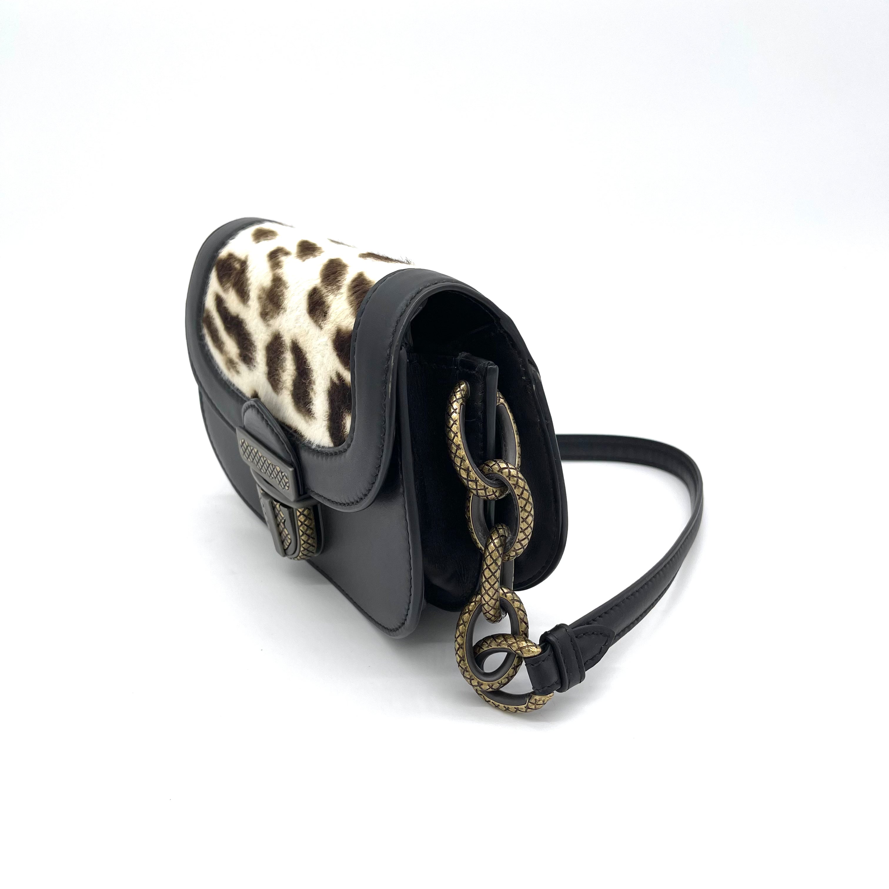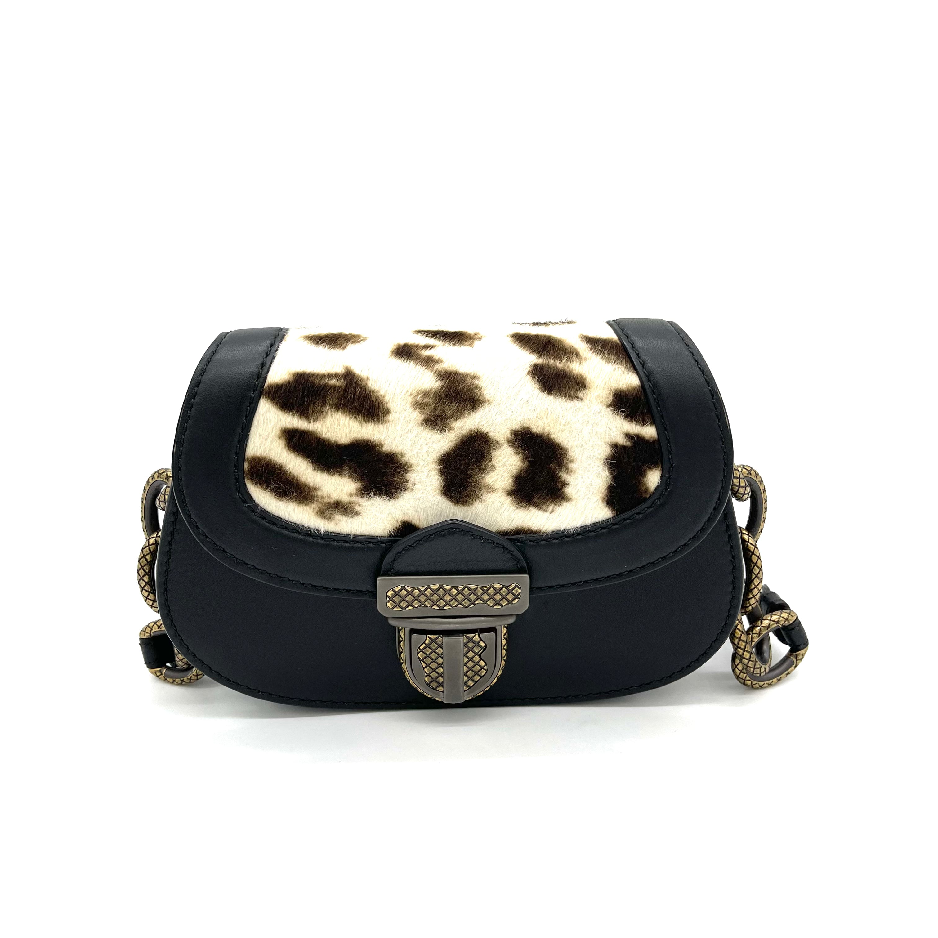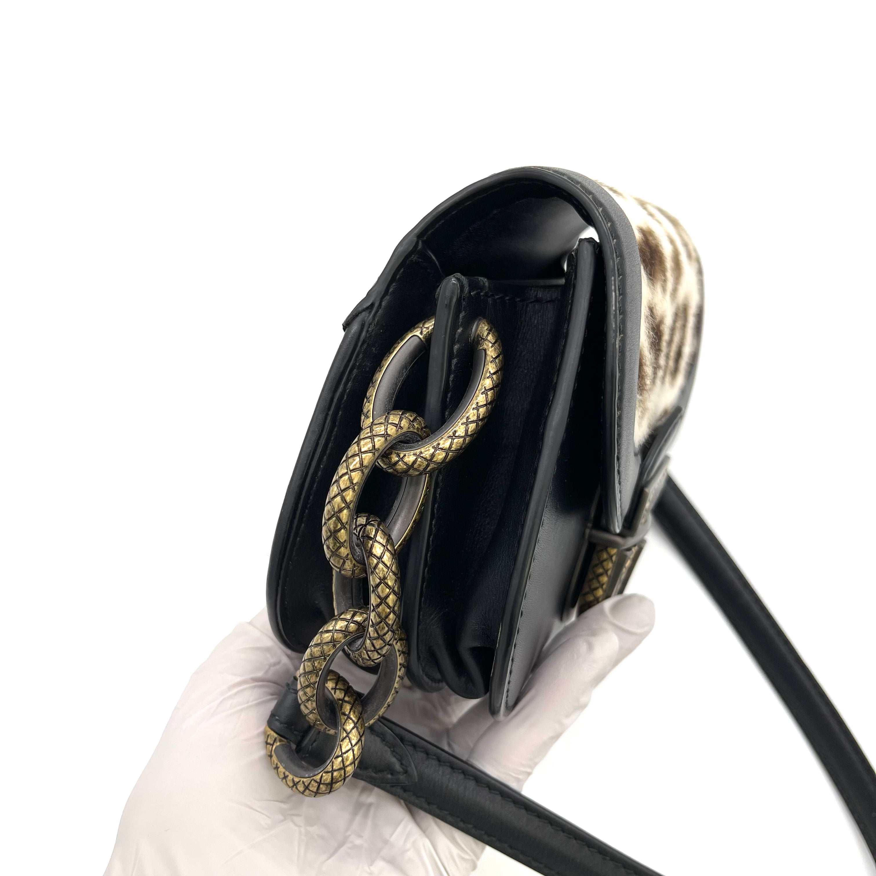 정품 보테가 베네타 송아지 가죽 포니 헤어 레오파드 프린트 움브리아 백 블랙 색상입니다. 블랙 색상의 부드러운 송아지 가죽과 포니 헤어의 치타 프린트로 제작된 세련된 숄더백입니다. 이 가방에는 앤티크 체인 스트랩과 푸시 잠금 잠금 장치가 있습니다. 앞면 플랩을 열면 칸막이가 있는 회갈색 스웨이드 소재 내부와 두 개의 칸막이 포켓이 있습니다.