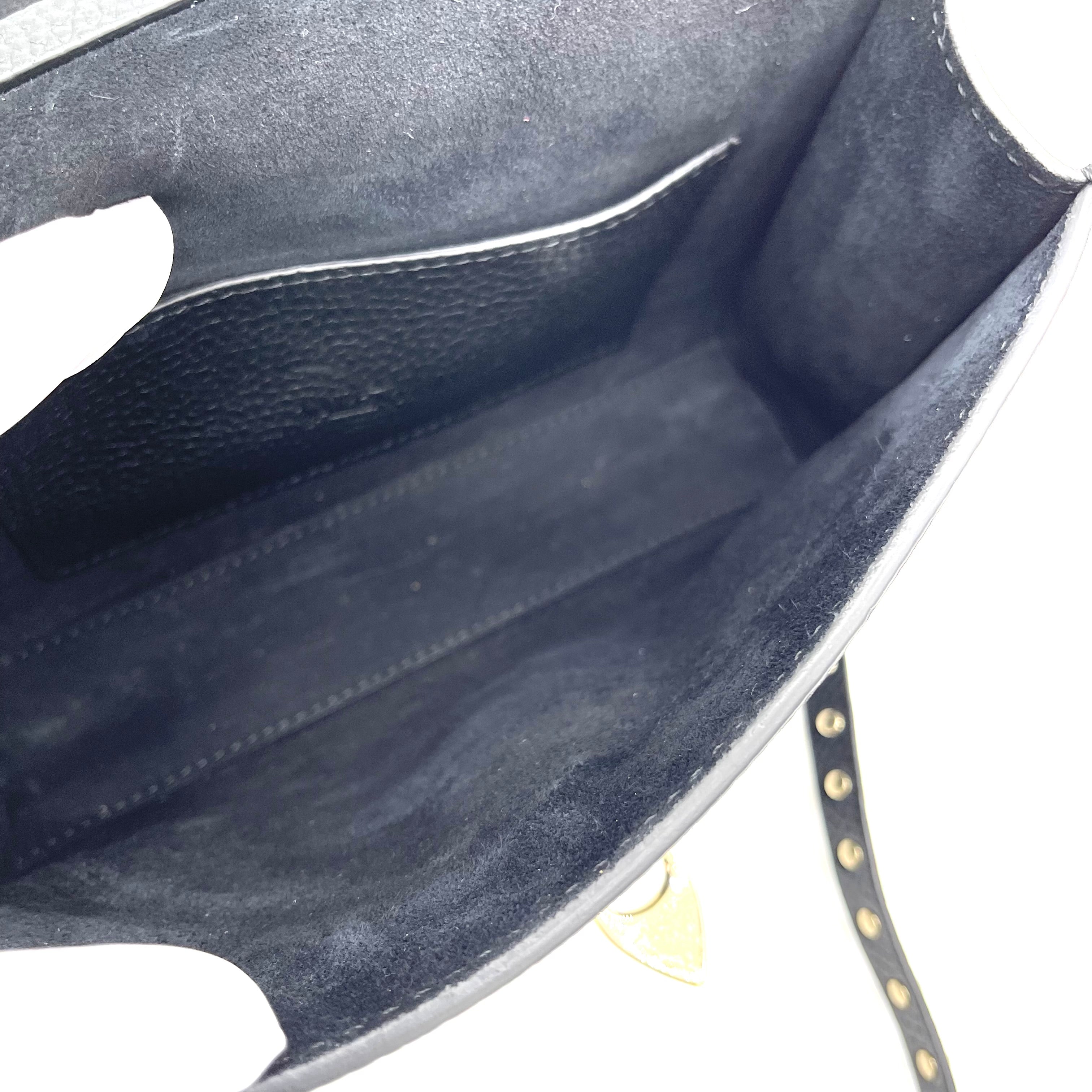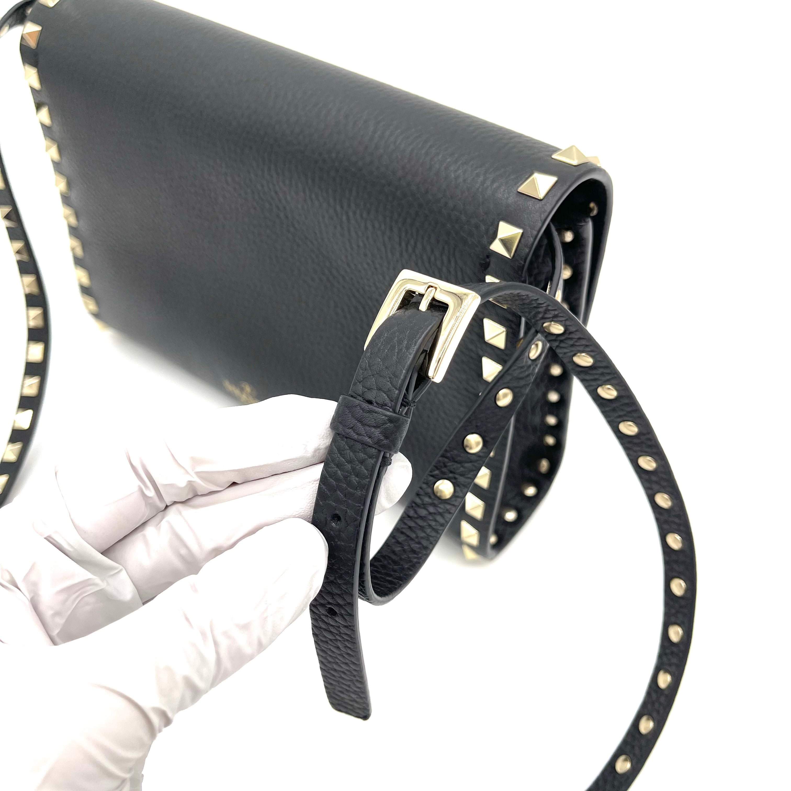 The iconic Rockstud Small shoulder bag from Valentino Garavani balances elegant charm with rebellious attitude. Crafted in Italy from smooth calf leather with suede lining, the structured flap-top style is trimmed with the iconic Pyramid studs in shiny hardware.