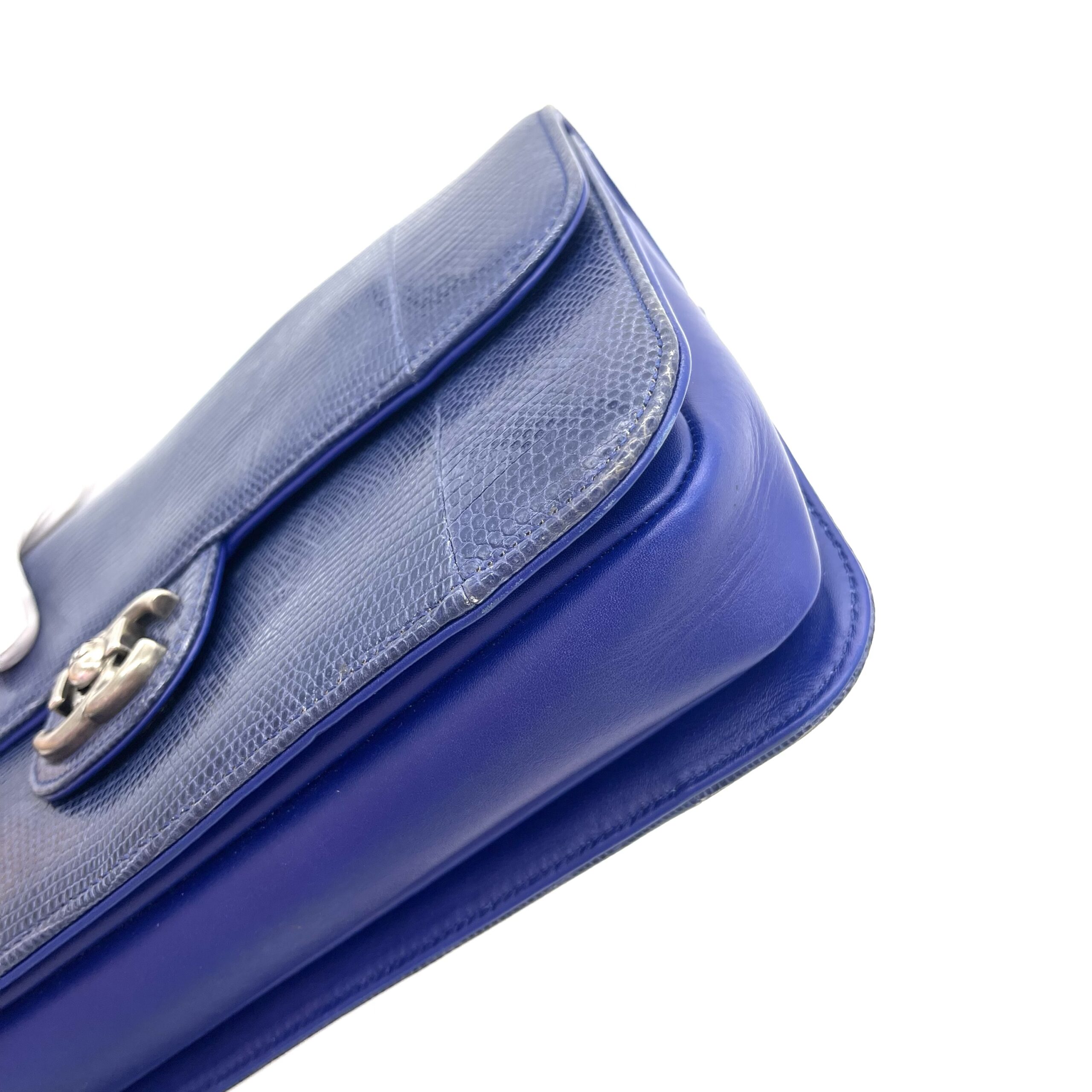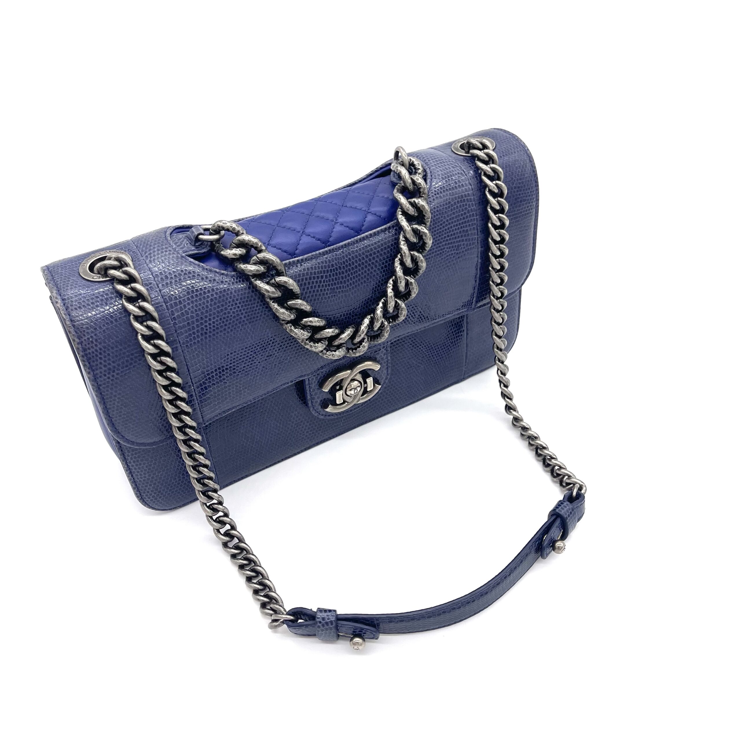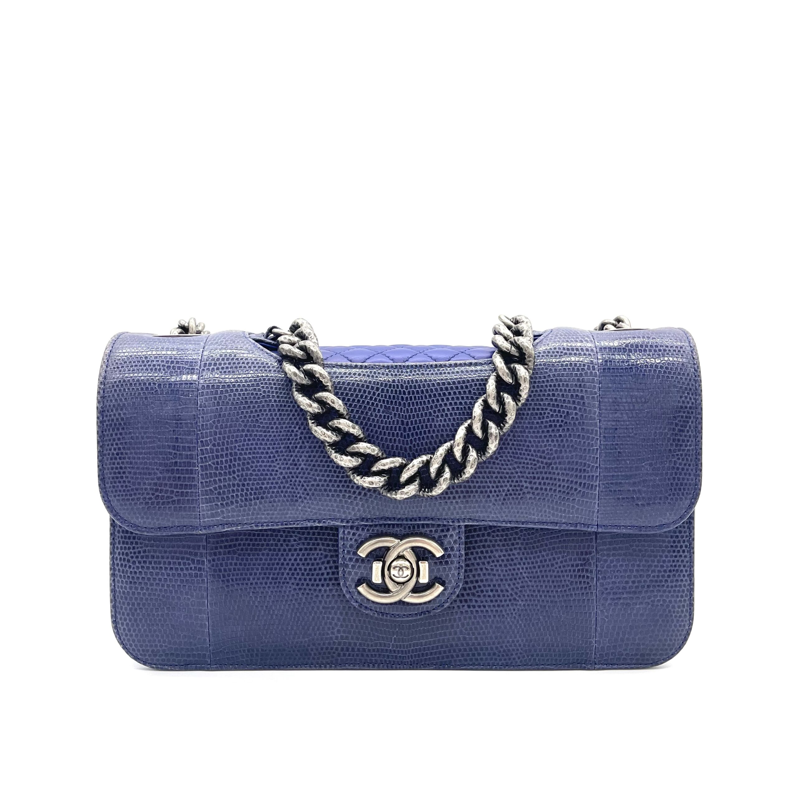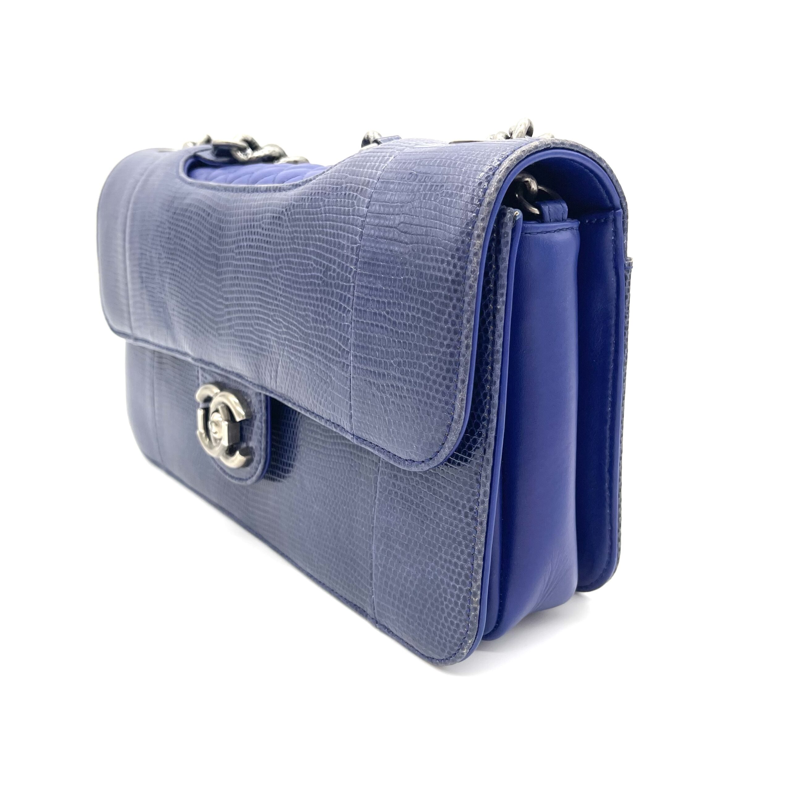 CHANEL Blue Lizard Skin Medium Perfect Edge Flap Bag – Silver Hardware