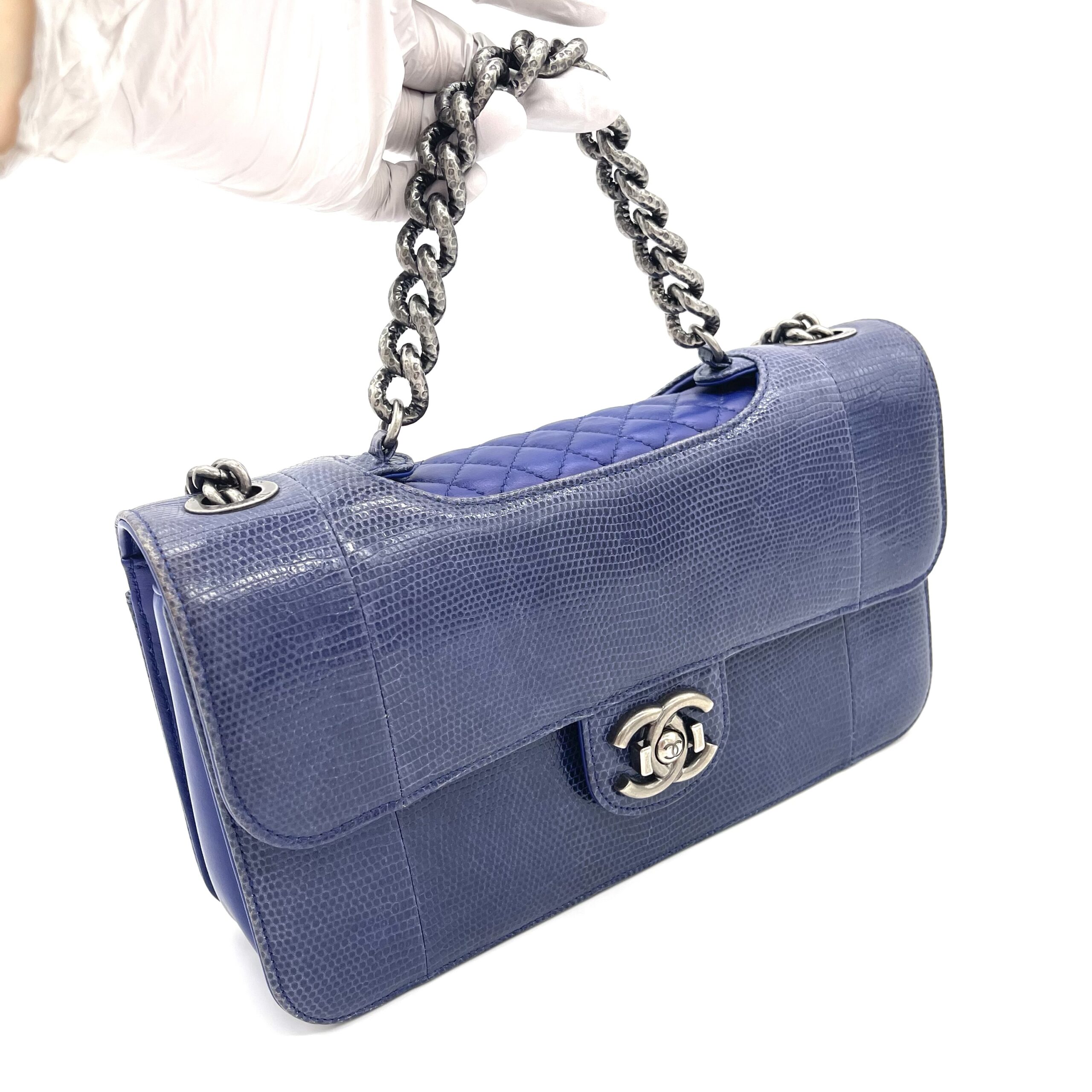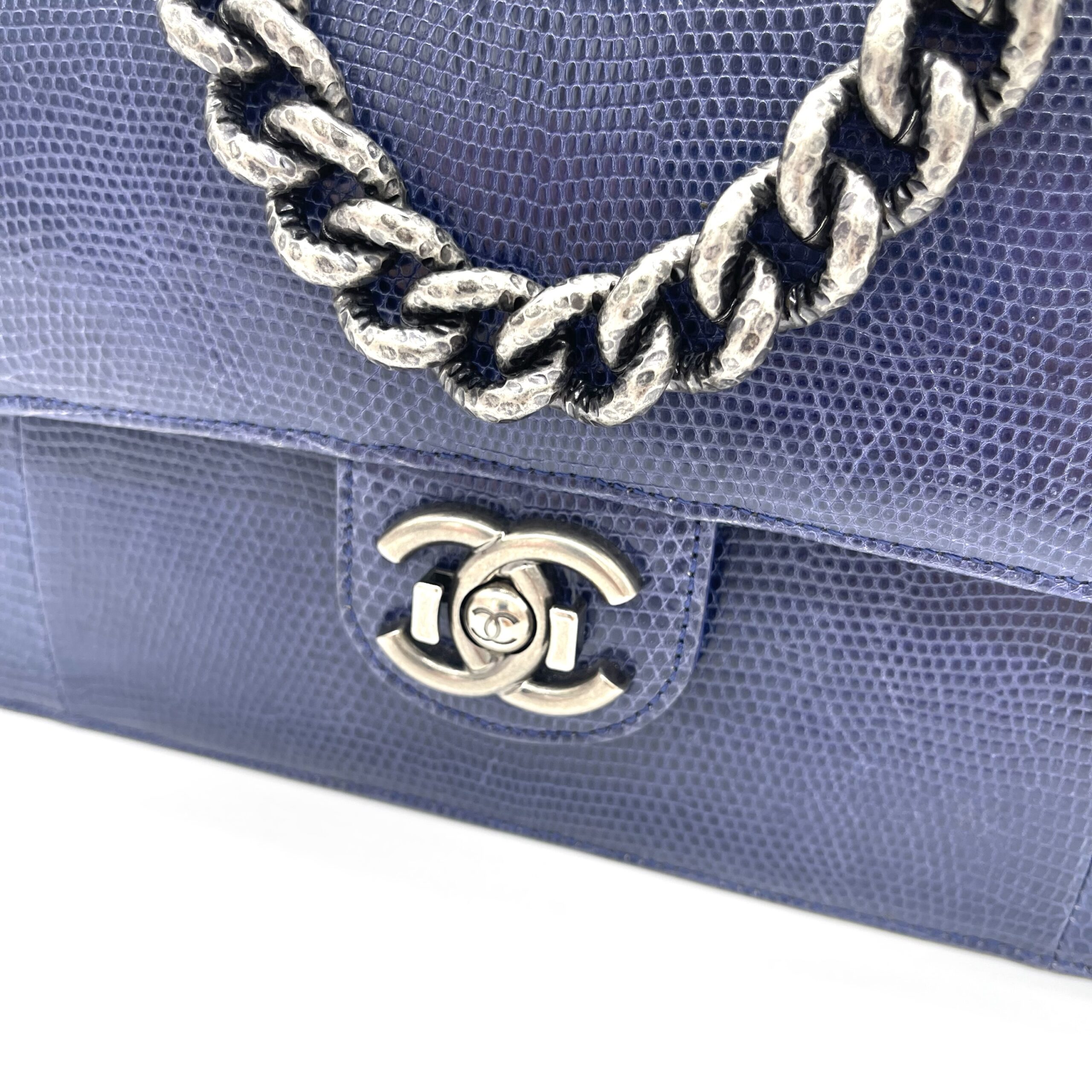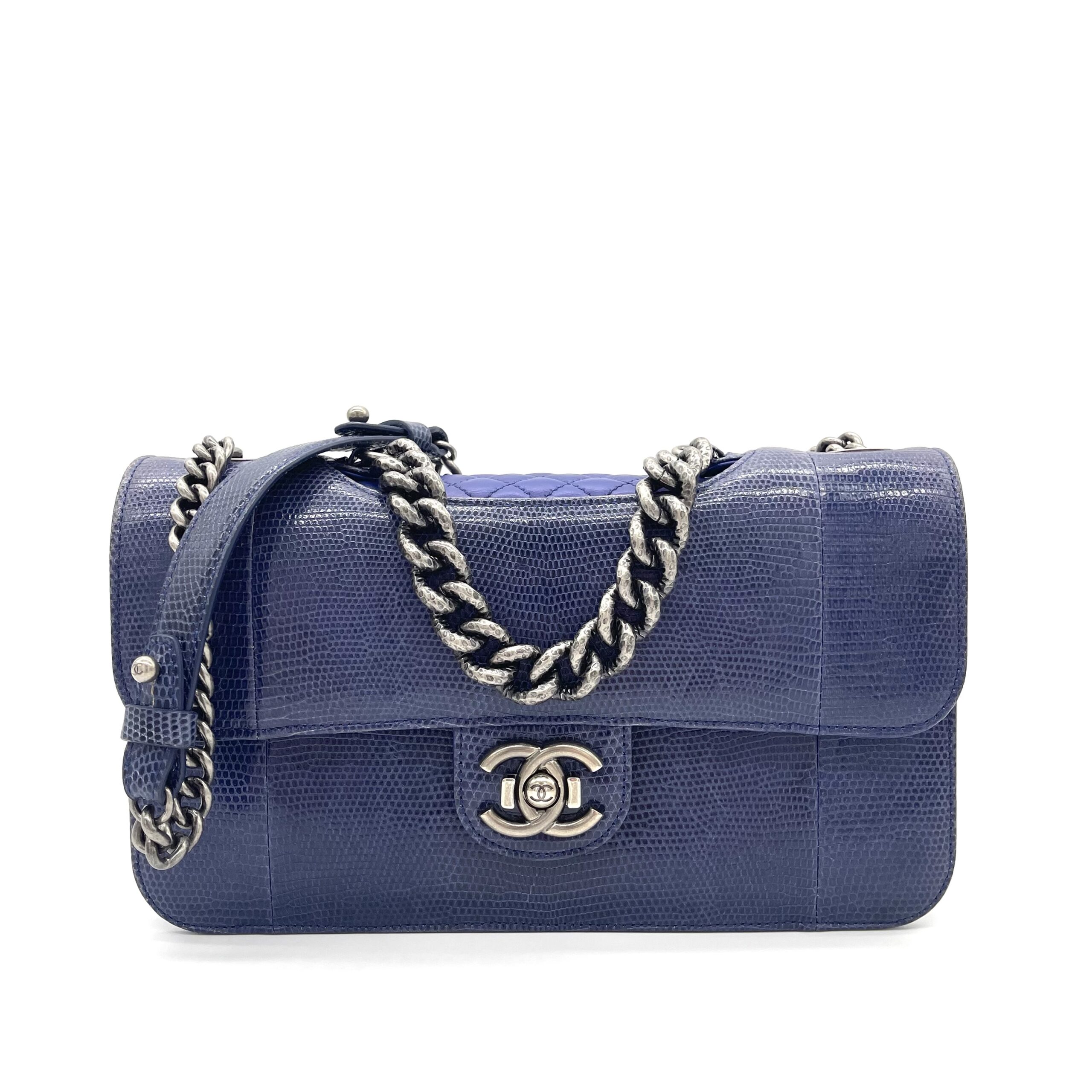 CHANEL Blue Lizard Skin Medium Perfect Edge Flap Bag – Silver Hardware