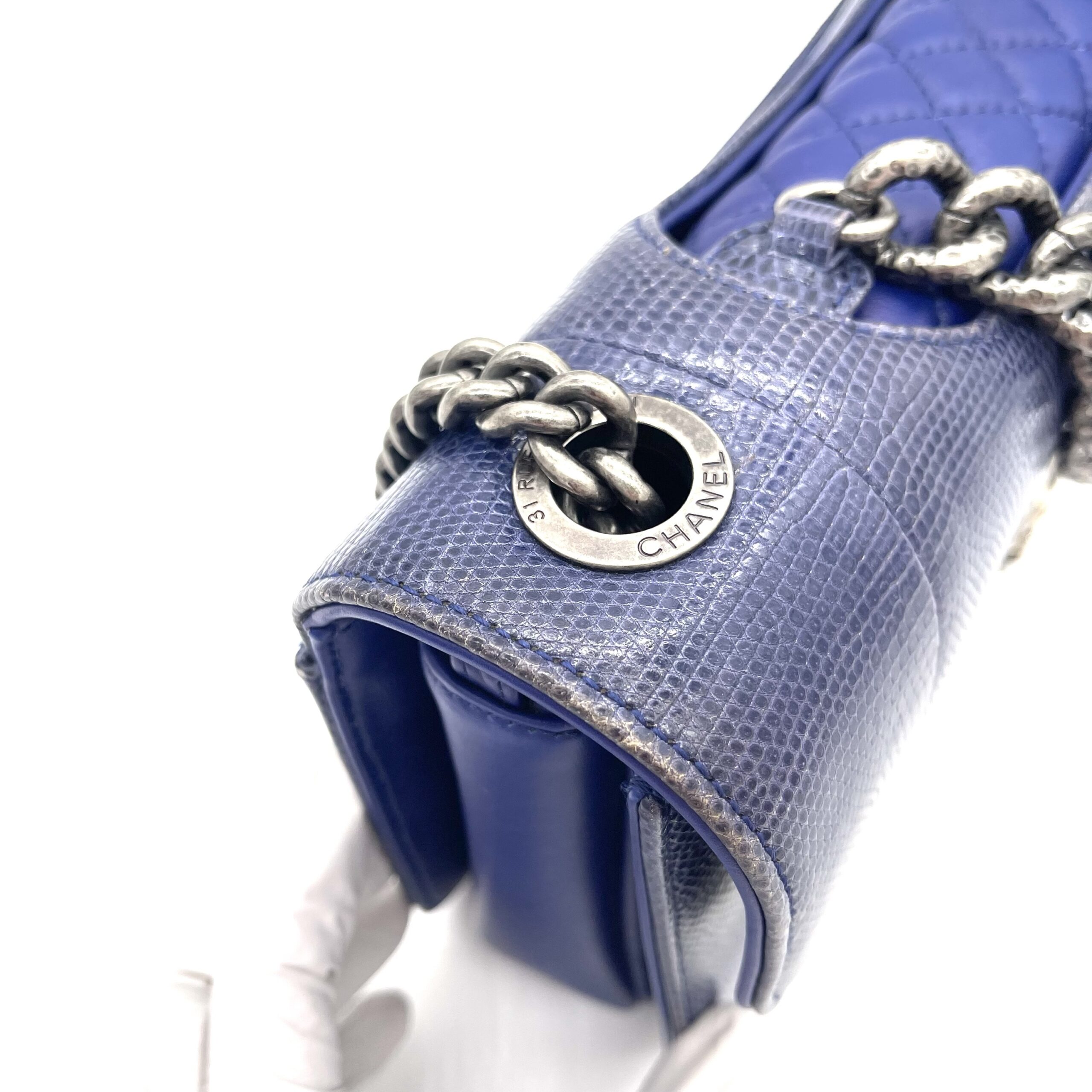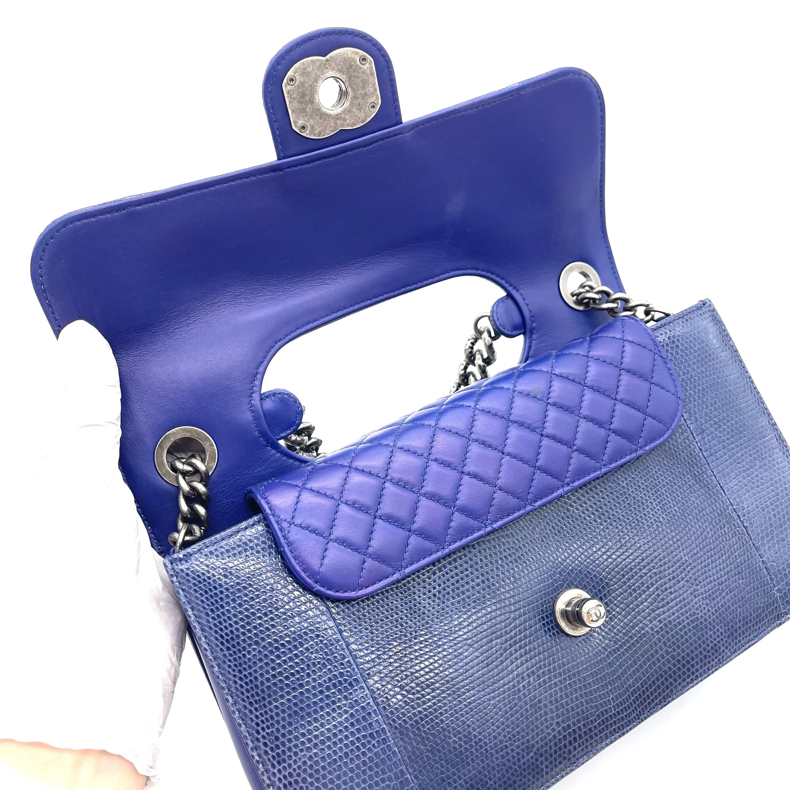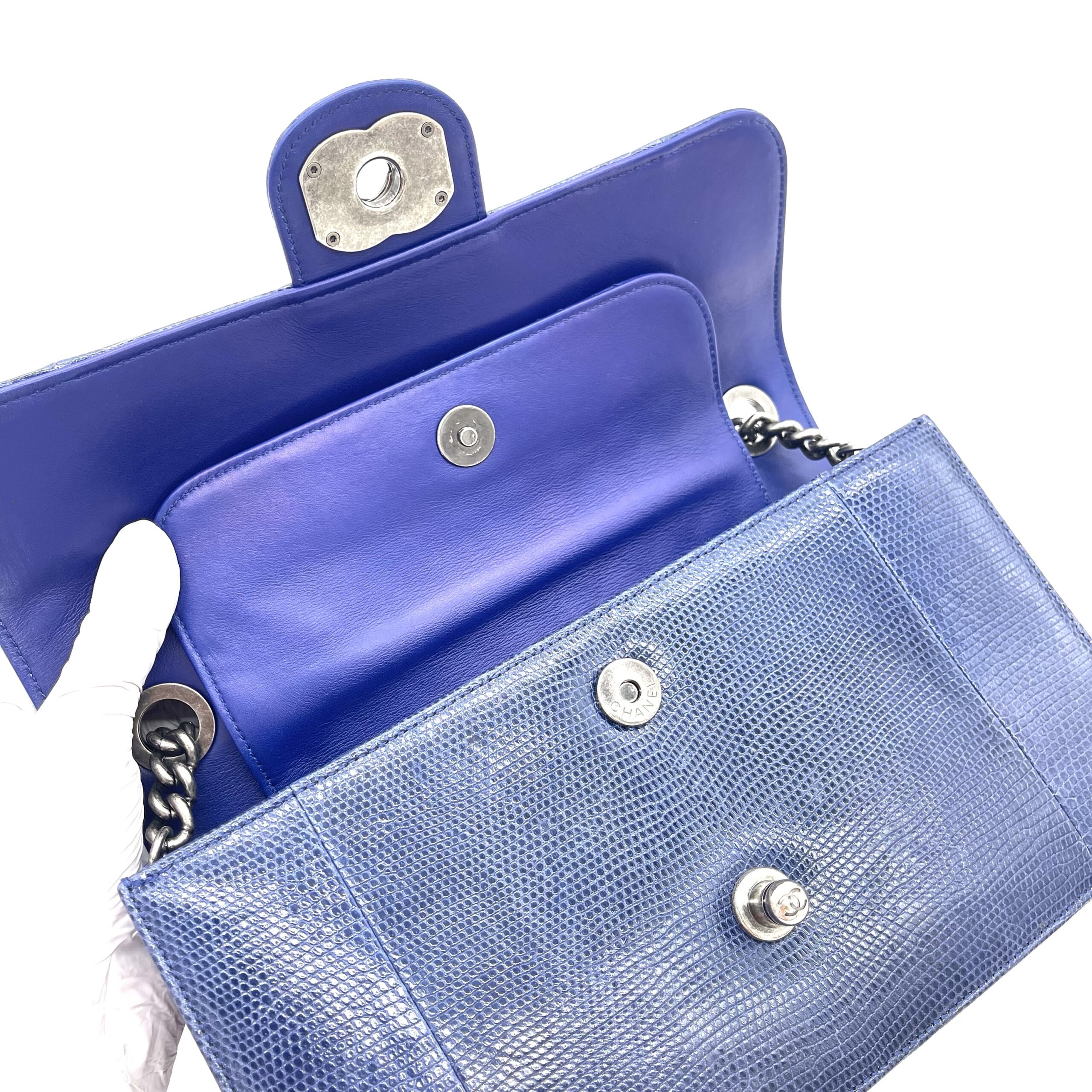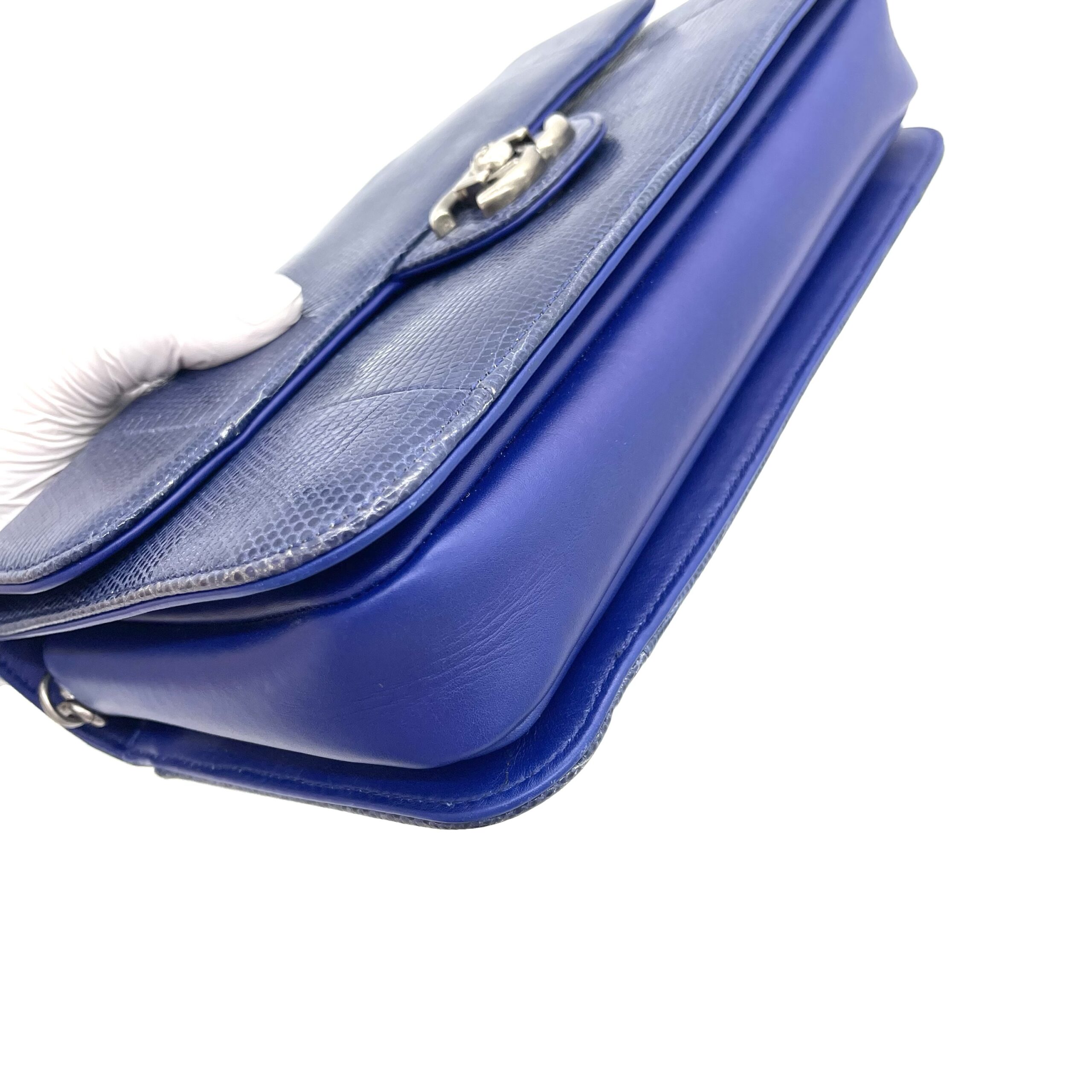 CHANEL Blue Lizard Skin Medium Perfect Edge Flap Bag – Silver Hardware