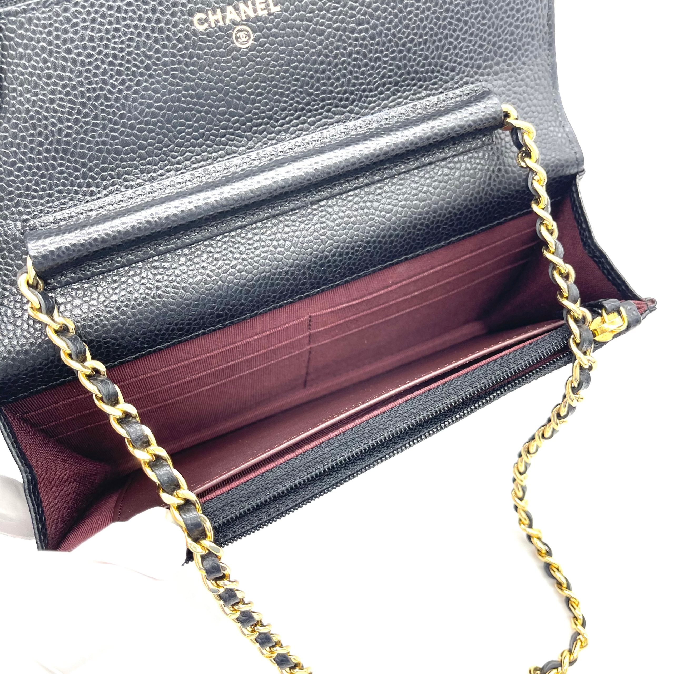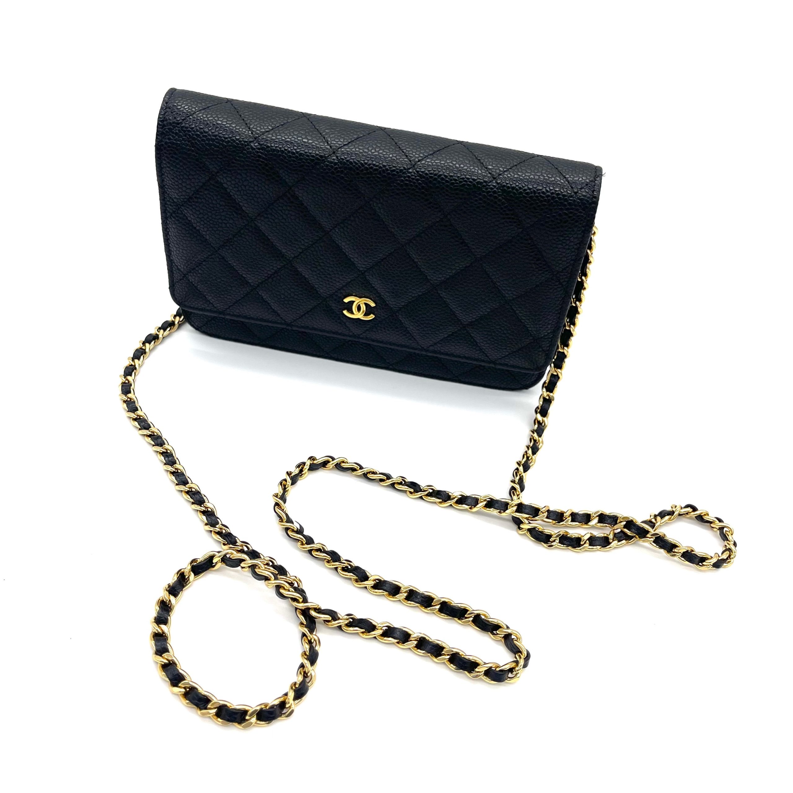 CHANEL Caviar Quilted Wallet On Chain (WOC) – Black & Gold