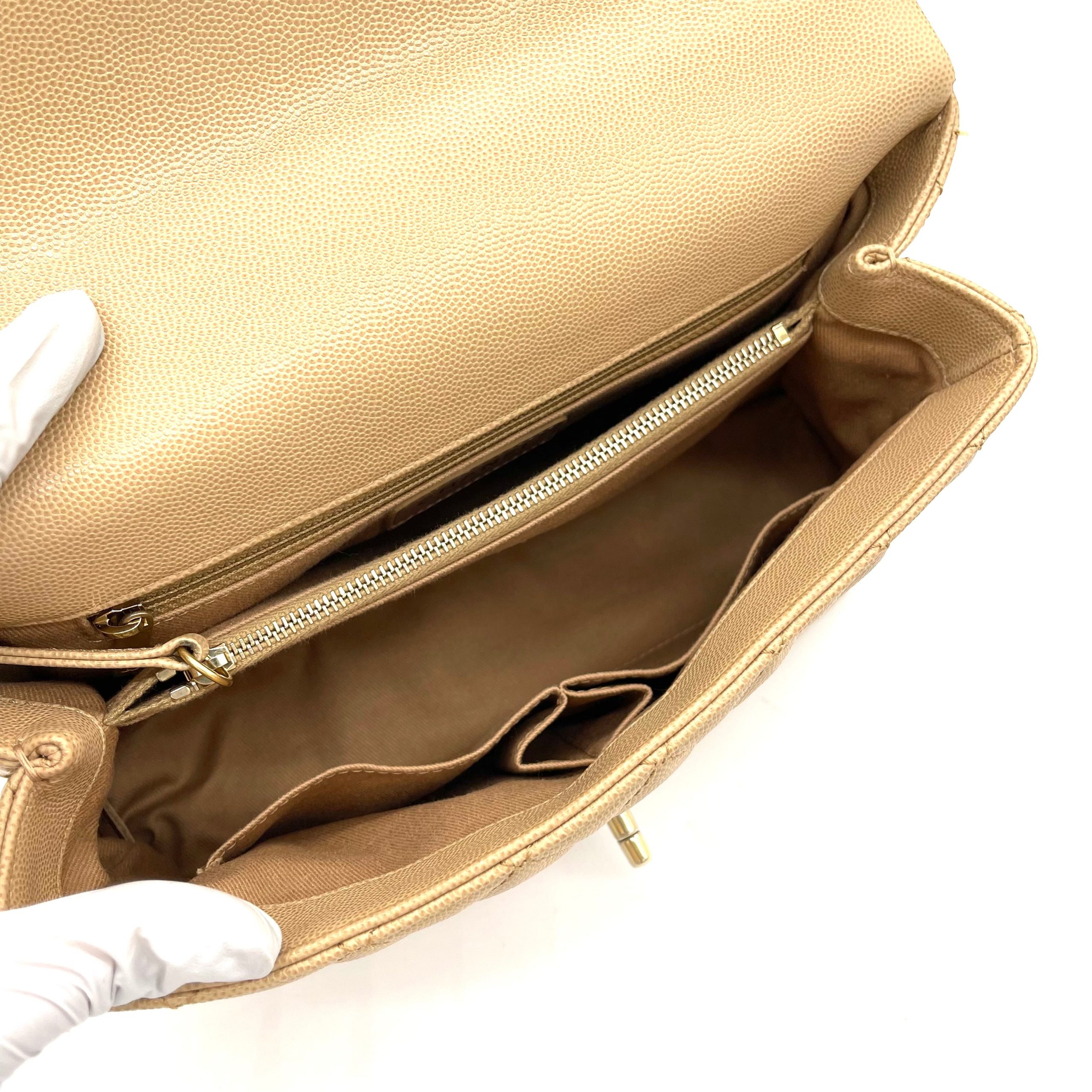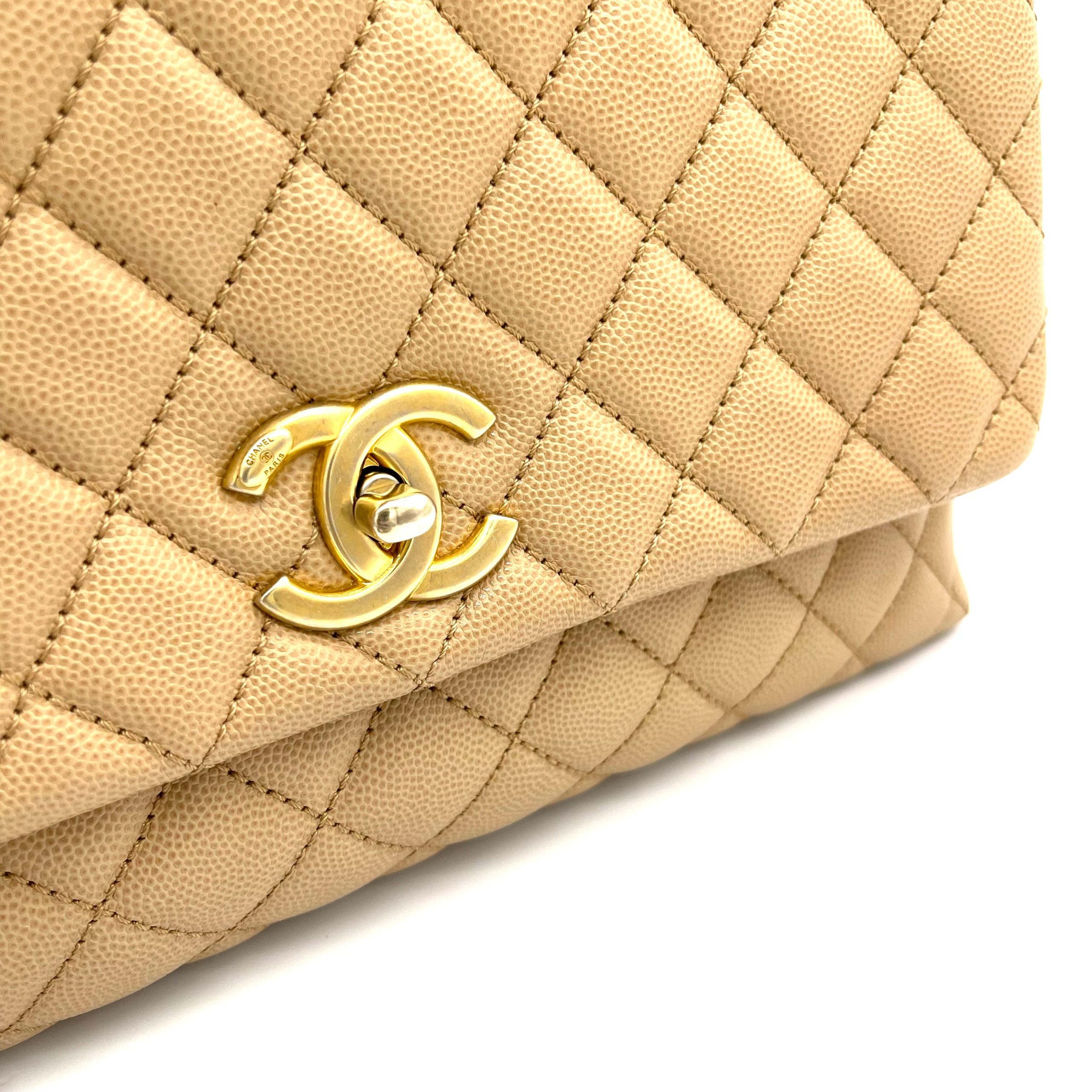 Chanel Coco Handle Small Flap Bag in Beige Caviar Leather with Gold Hardware