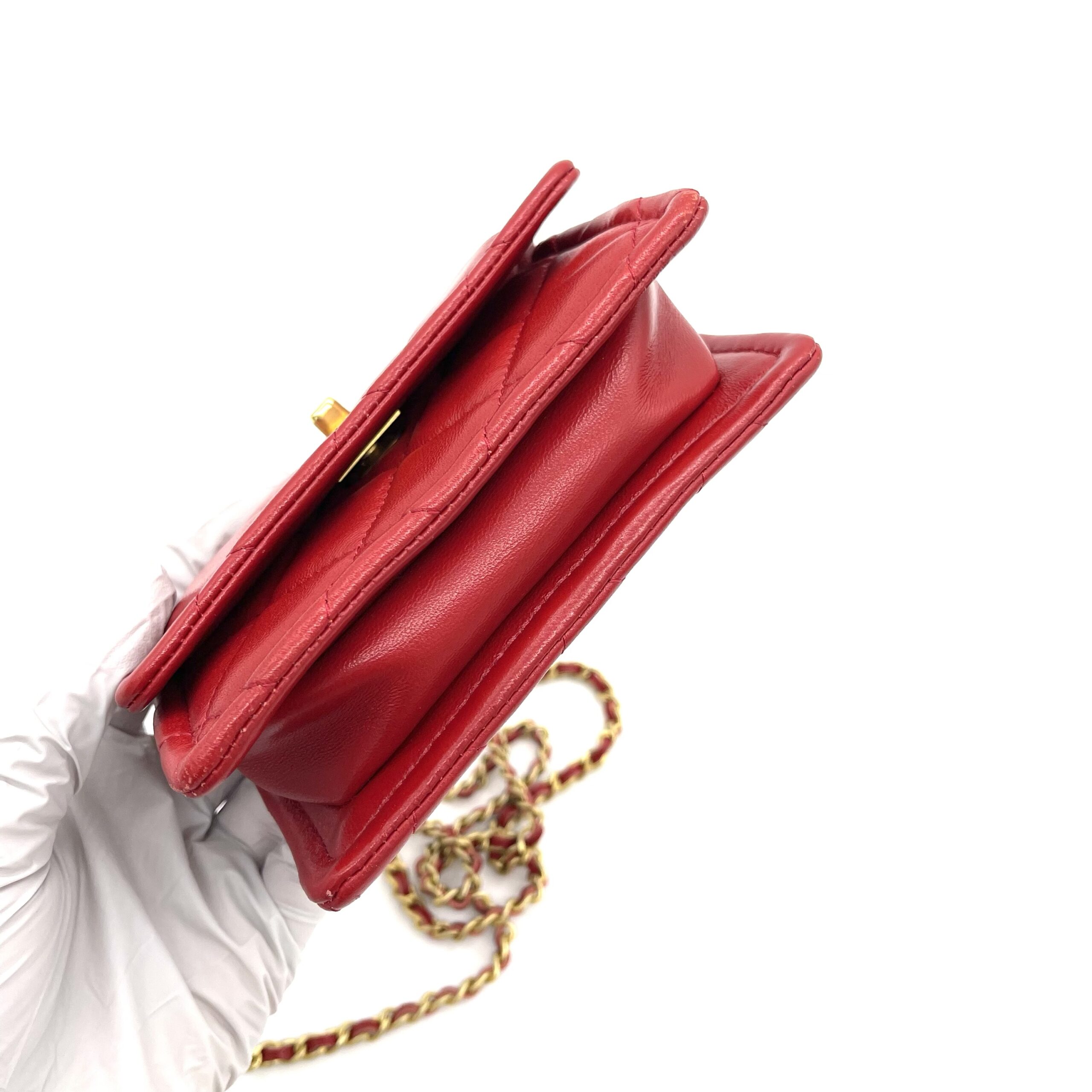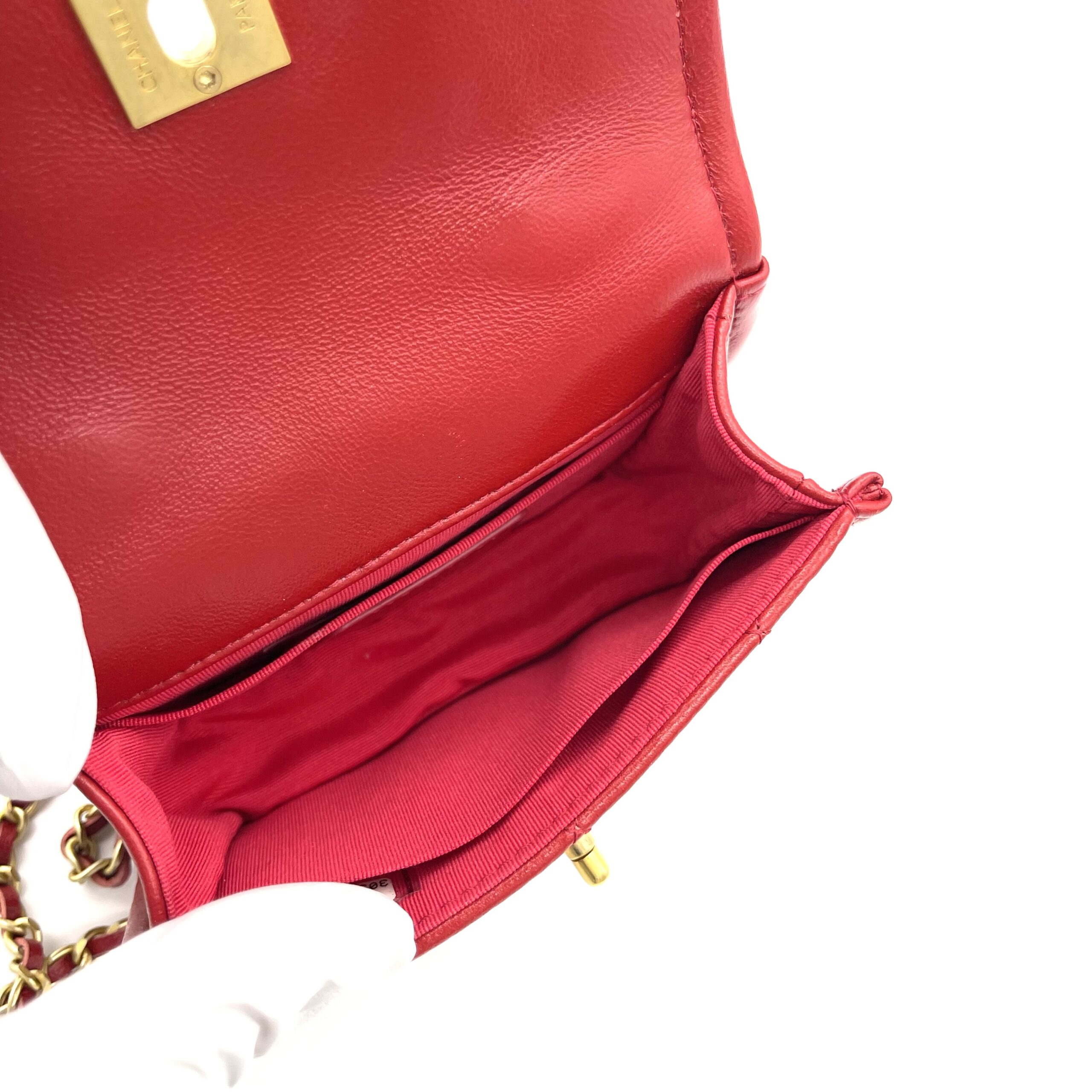 CHANEL Extra Mini Flap Bag in Red Shiny Quilted Lambskin