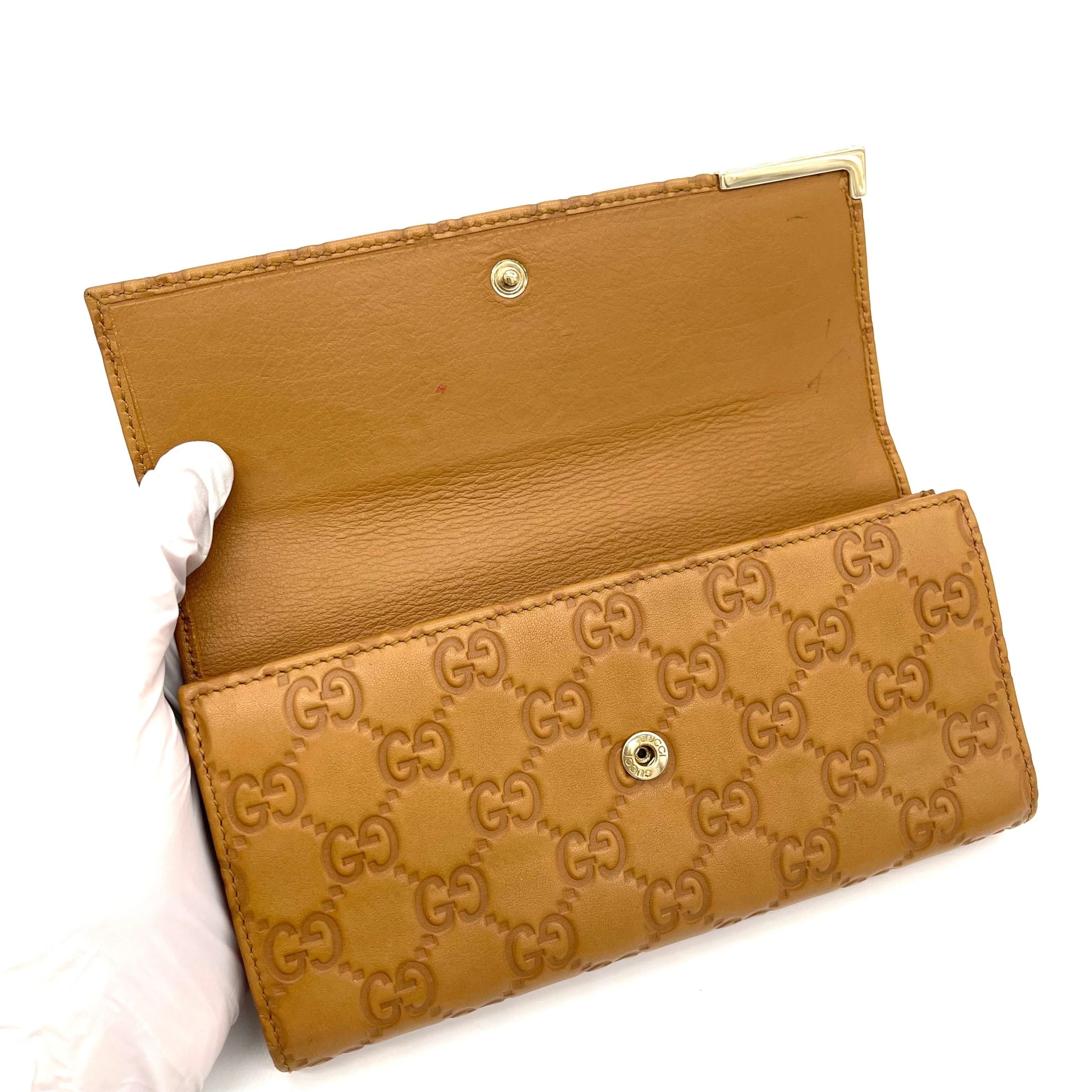 This is an authentic GUCCI Guccissima Continental Wallet. This stylish wallet is crafted of Gucci GG monogram embossed leather with a frontal flap and a gold plate with the Gucci name logo. This opens to a leather interior with a large pocket, patch pockets, and card slots. This is an excellent wallet that is practical and chic with the sophisticated style of Gucci