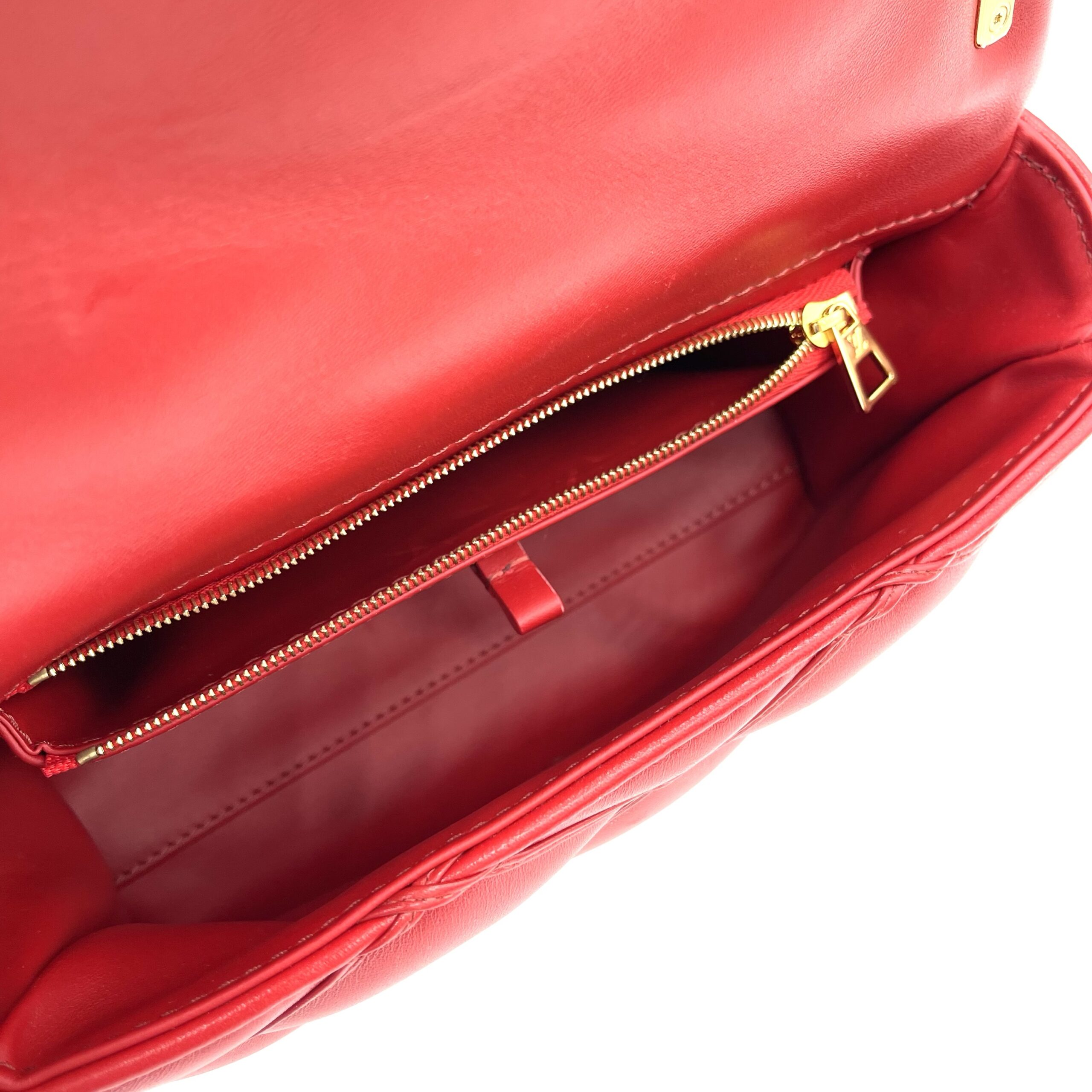 This is a stunning Louis Vuitton GO-14 MM in a beautiful red leather finish with elegant gold-tone hardware. The bag is in like-new condition, showing minimal to no signs of wear and has been exceptionally well maintained. The structure, leather, an...