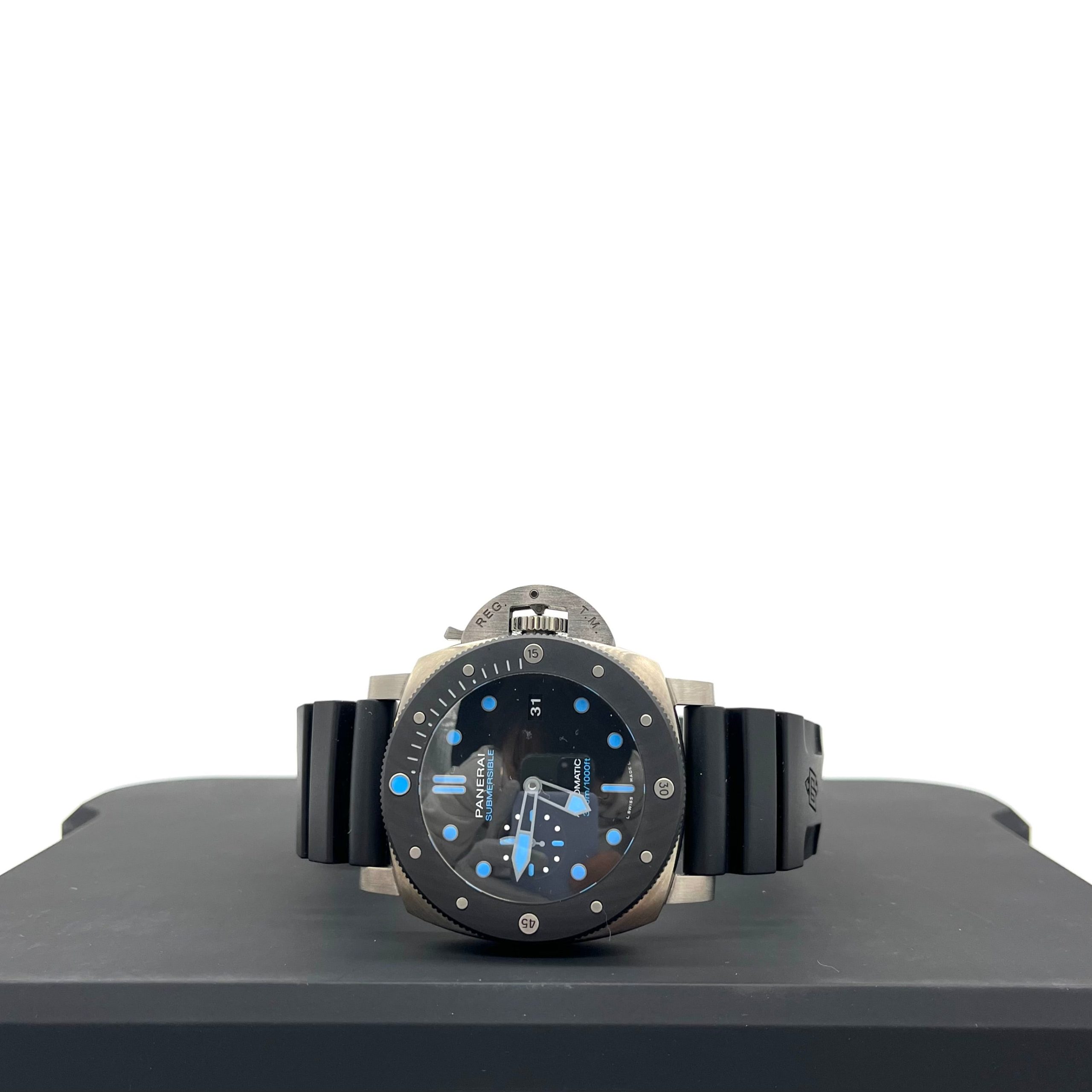 This is an authentic Panerai Submersible BMG-TECH. This is a Panerai watch featuring two of the brand’s most innovative materials: a BMG-TECHA case and a Carbotecha bezel. These materials ensure extreme strength, scratch resistance, and lightness. Moreover, the uneven, matt black appearance of the Carbotecha, which varies according to the cutting of the material, ensures that each watch is unique.