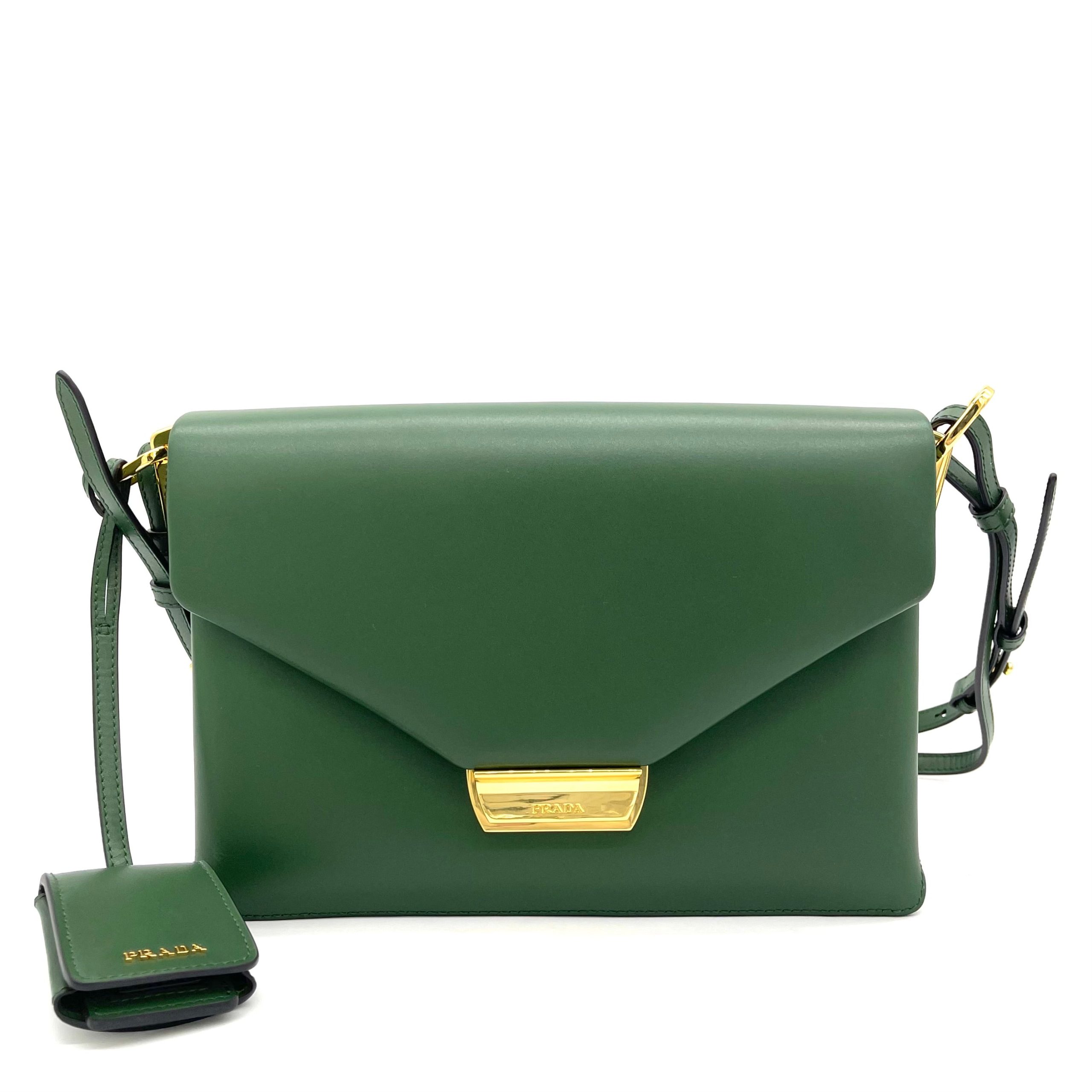 Meet Ingrid. Ingrid is an envelope shoulder bag from Prada who’s about to steal your heart. Featuring an adjustable shoulder strap, a foldover top with push-lock closure, gold-tone hardware, an engraved logo, a hanging leather tag, a rear logo stamp, multiple interior compartments and an internal logo stamp.