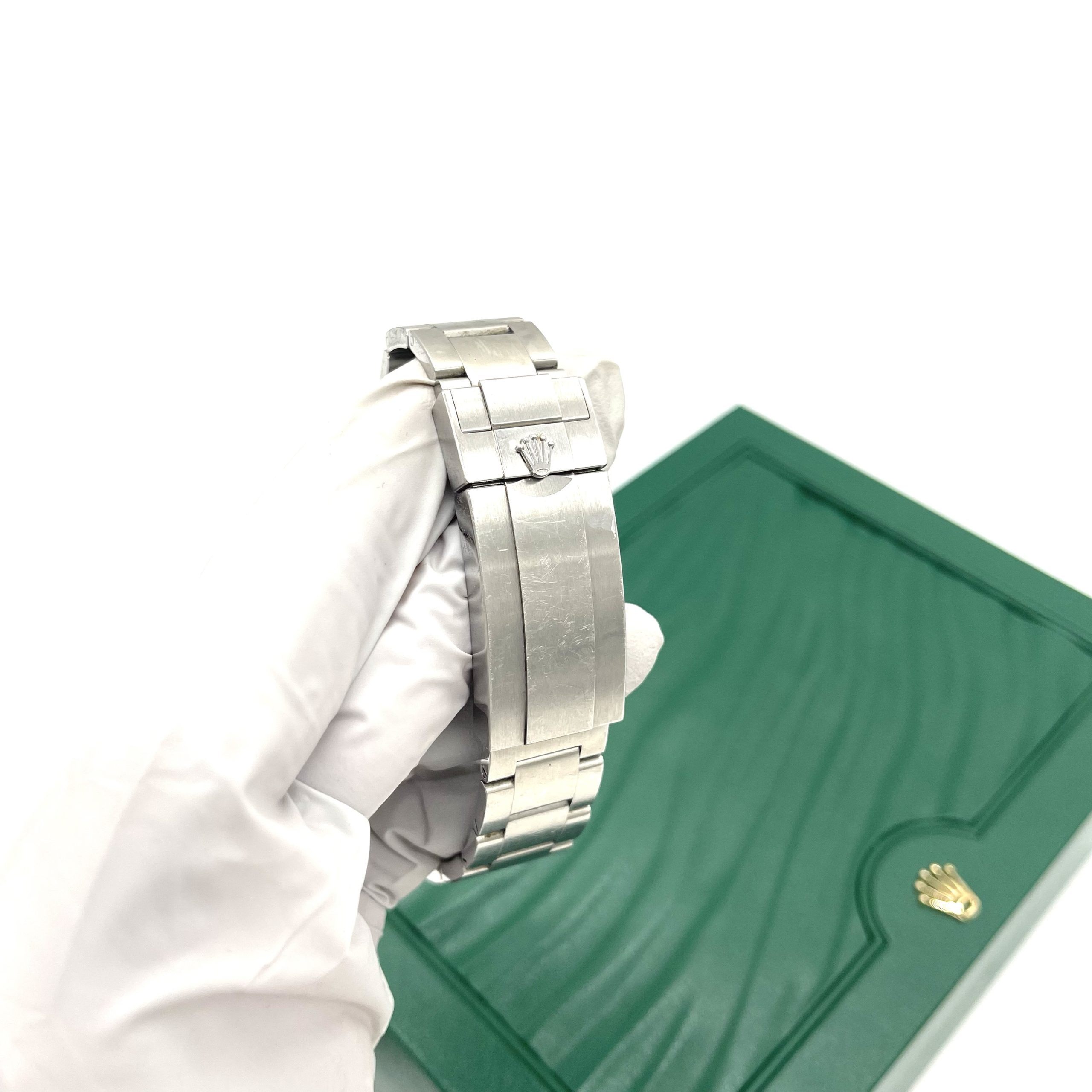 The watch comes as a full set, including the original Rolex box and authentic warranty card, making it an excellent choice for collectors and enthusiasts alike.