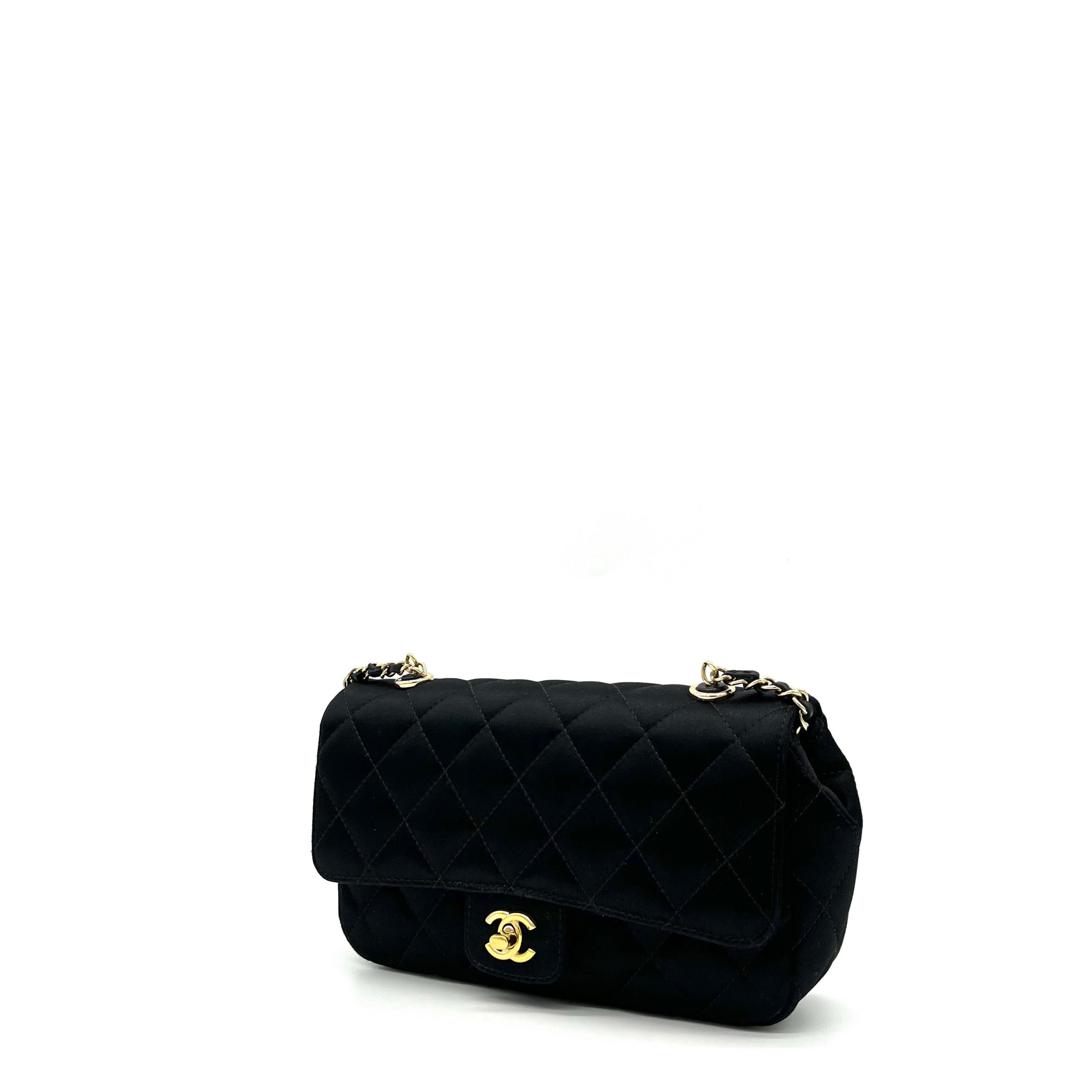 Chanel Satin Black Single Mini Flap Bag with Champagne Gold Hardware 2015-2016