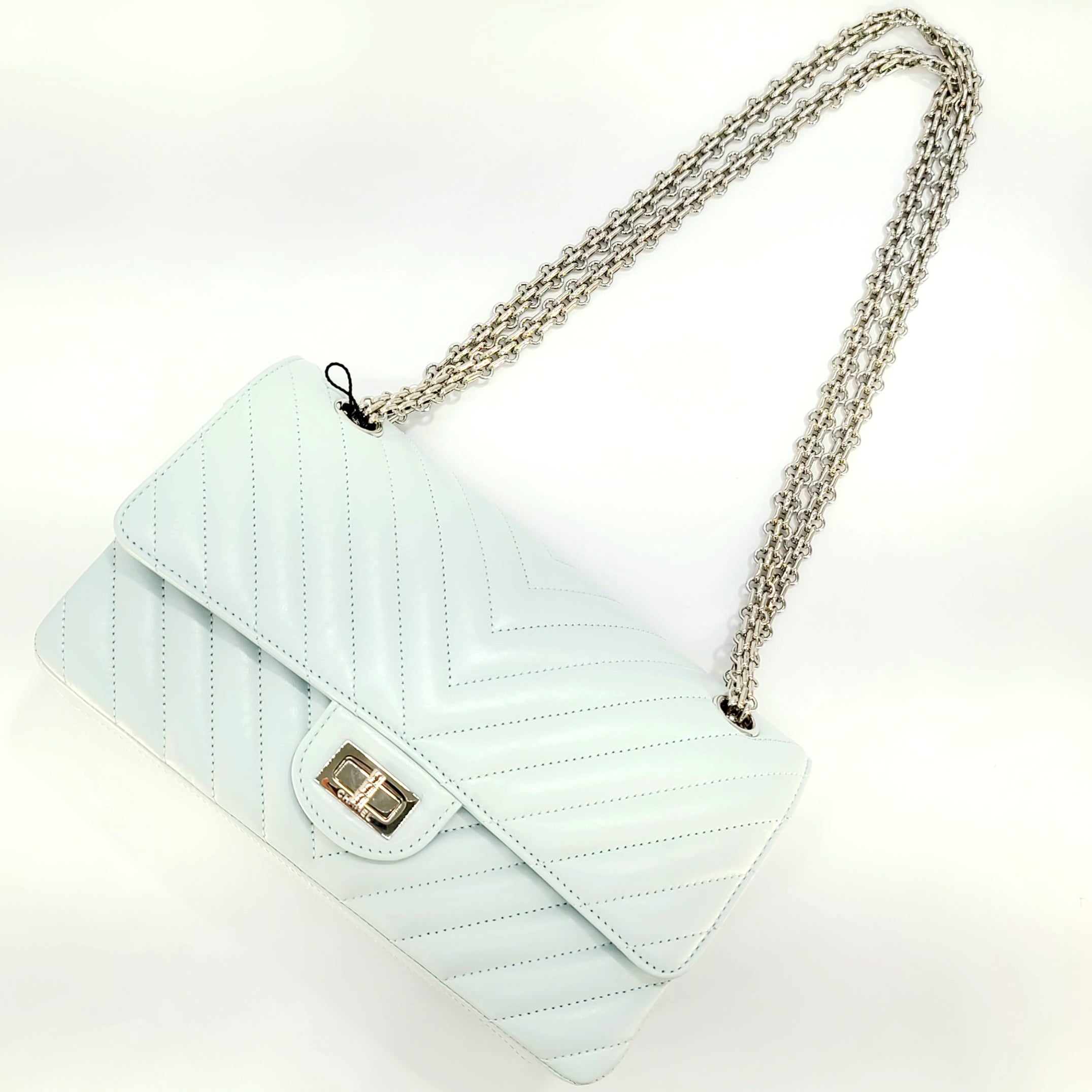 2022 Brand New Chanel 2.55 HANDBAG Aged Calfskin & Silver-Tone Metal Light Blue